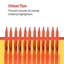 School Smart Pen Style Highlighters, Chisel Tip, Orange, Pack of 12