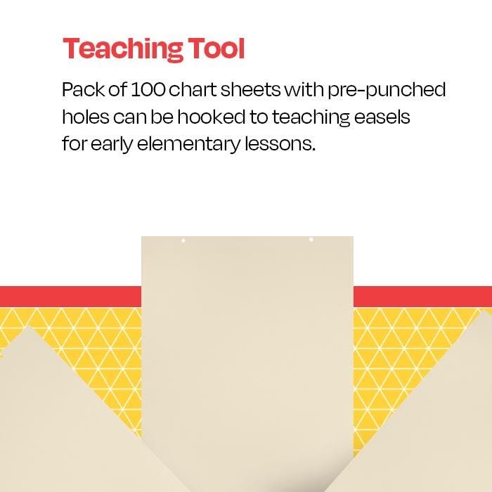 Take lesson plans and handwriting practice to the next level with the School Smart Manila Tag Chart Paper. The sturdy buff-colored design has a 15 lb. basis weight that prevents common bleed-throughs from markers or pens, and features unruled space on both sides for ample writing surface. Two small punched holes at the top make it easy to hang on teacher easels or bulletin boards. The full manila chart includes 100 double-sided unruled sheets with each sheet measuring 36 x 24 inches. Recommended for Grades K to 3.
