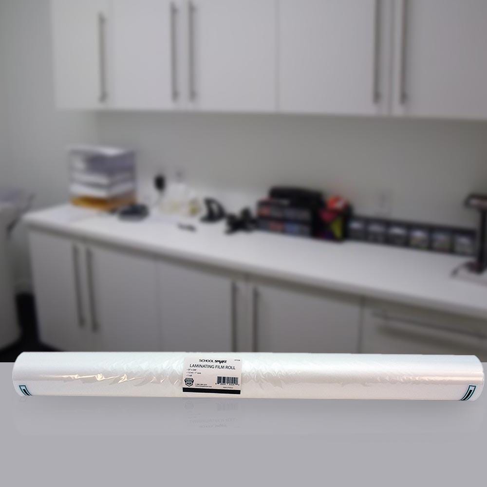 School Smart's high gloss laminating film comes on a 1-inch core and is specifically for roller laminators. It is designed to work with all brands of heat seal laminators. The high gloss finish provides an excellent write-on/wipe-off surface.