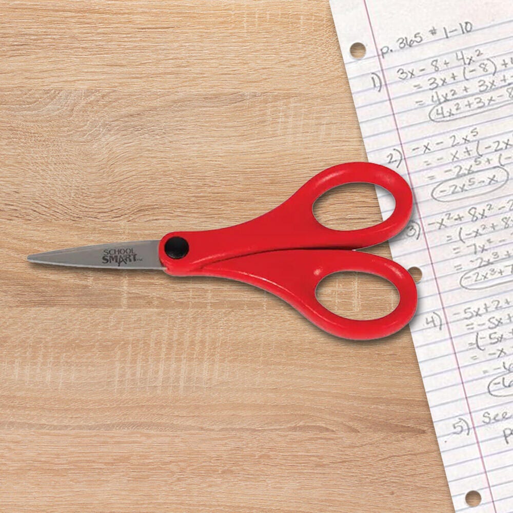 School Smart Lightweight Straight Handle Scissors, 5 Inches, Red
