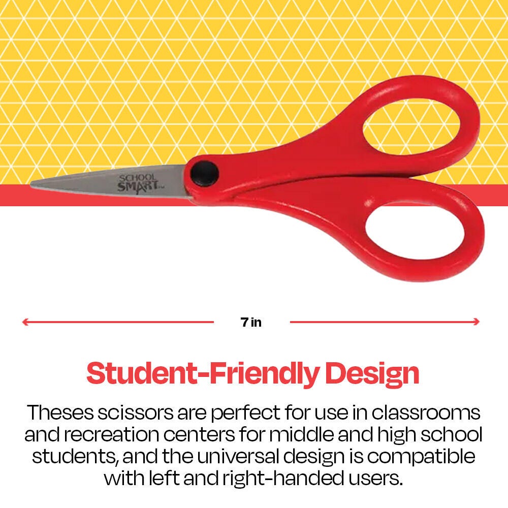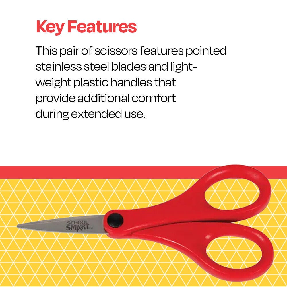 A perfect addition to your classroom or office, School Smart 5 inch lightweight straight scissors are made of stainless steel blades and plastic handles. The comfortable and durable straight shears can be used by right-handed and left-handed users. Get consistent cutting action whether you’re a student in middle or high school or an experienced pro at work.Features