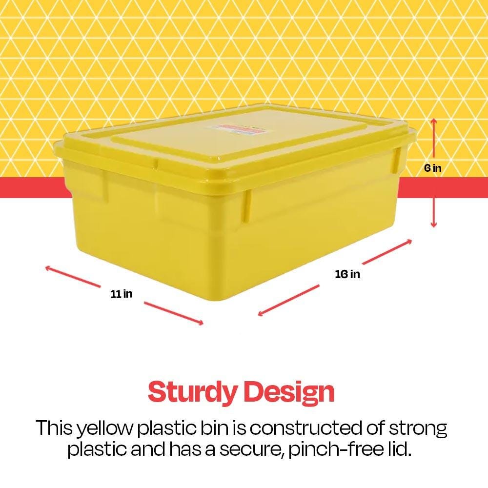 School Smart Medium Storage Bin with Lid, 11 x 16 x 6 Inches, Yellow