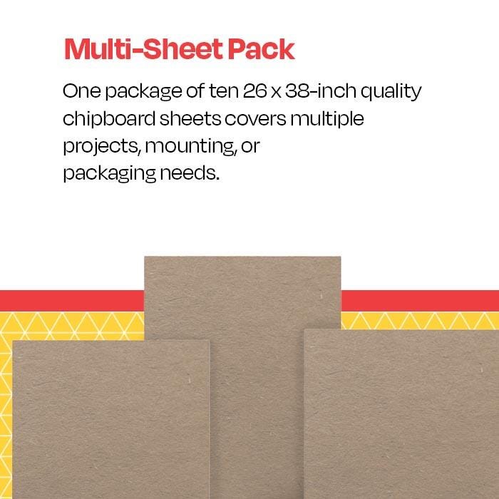 Get crafty with the 16-Ply Gray Chipboard from School Smart! Measuring 26 x 38 inches, this is an all-purpose, smooth-surfaced mounting board. This chipboard is an ideal choice for paper sculpture, picture backing, and a variety of art projects. With a sturdy structure, utilize these chipboards in organization projects for support and protection of papers and documents! These are sold as a pack of 10 boards.