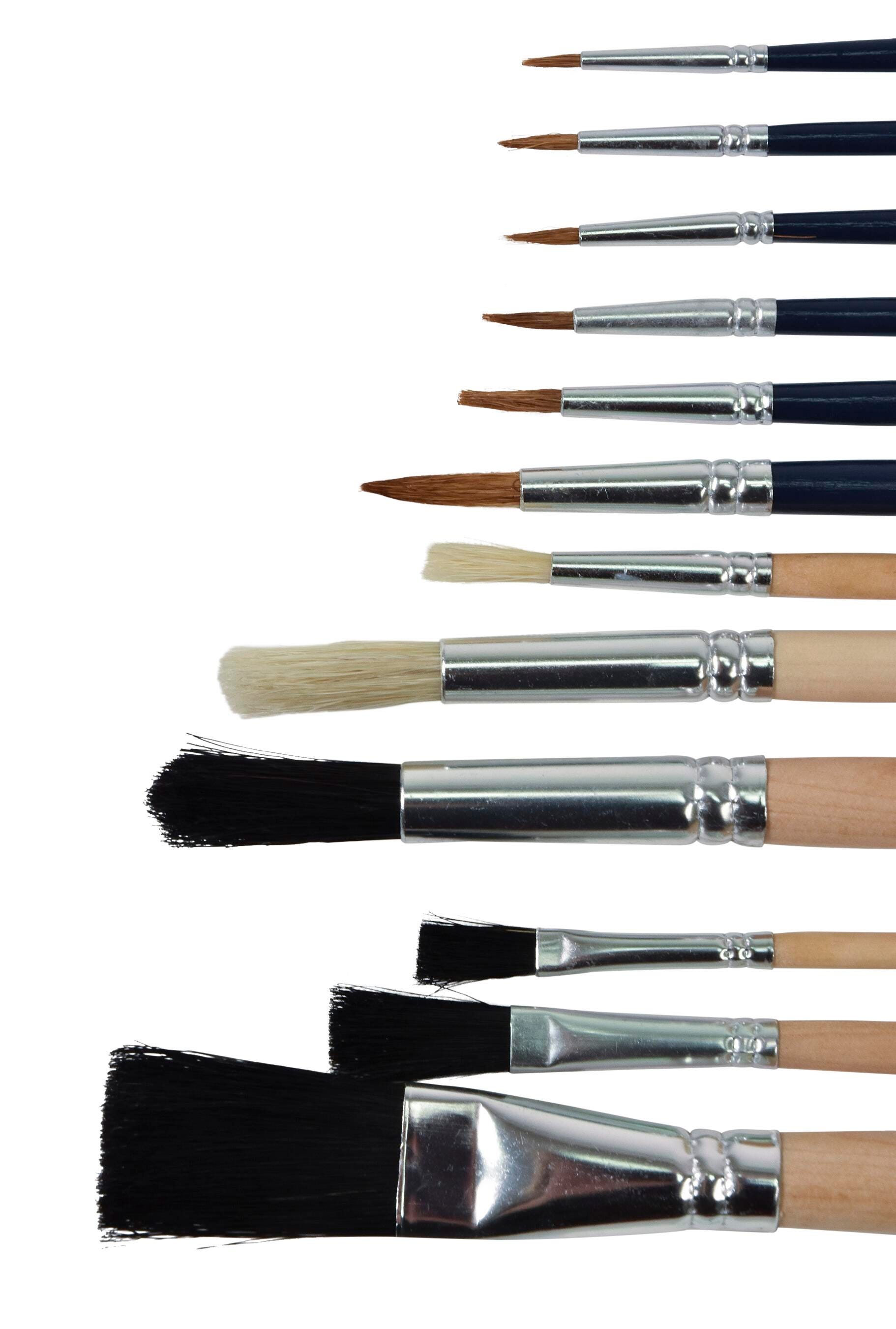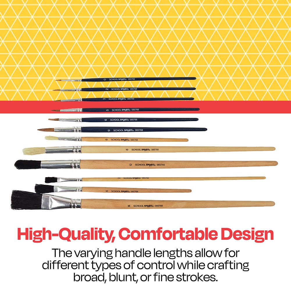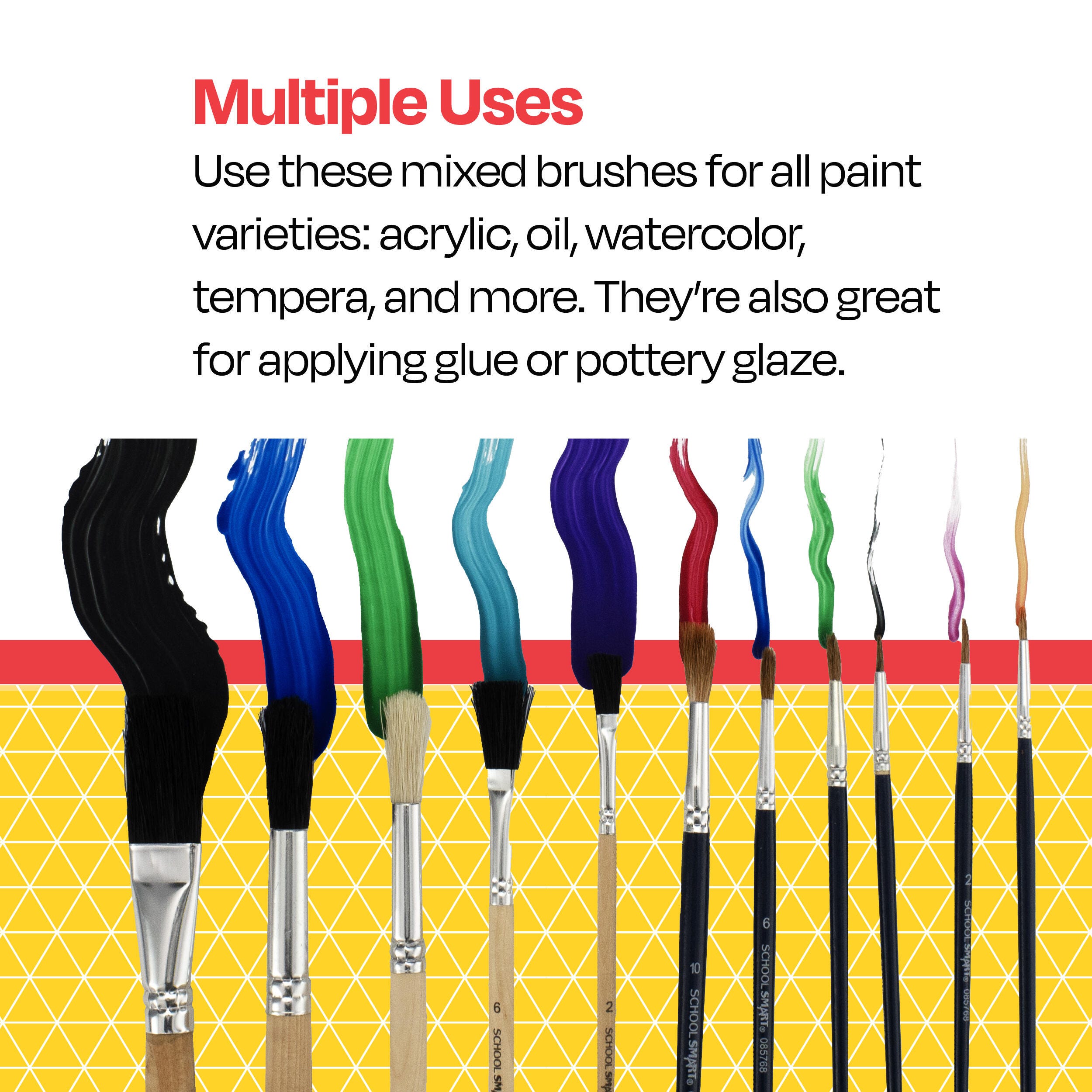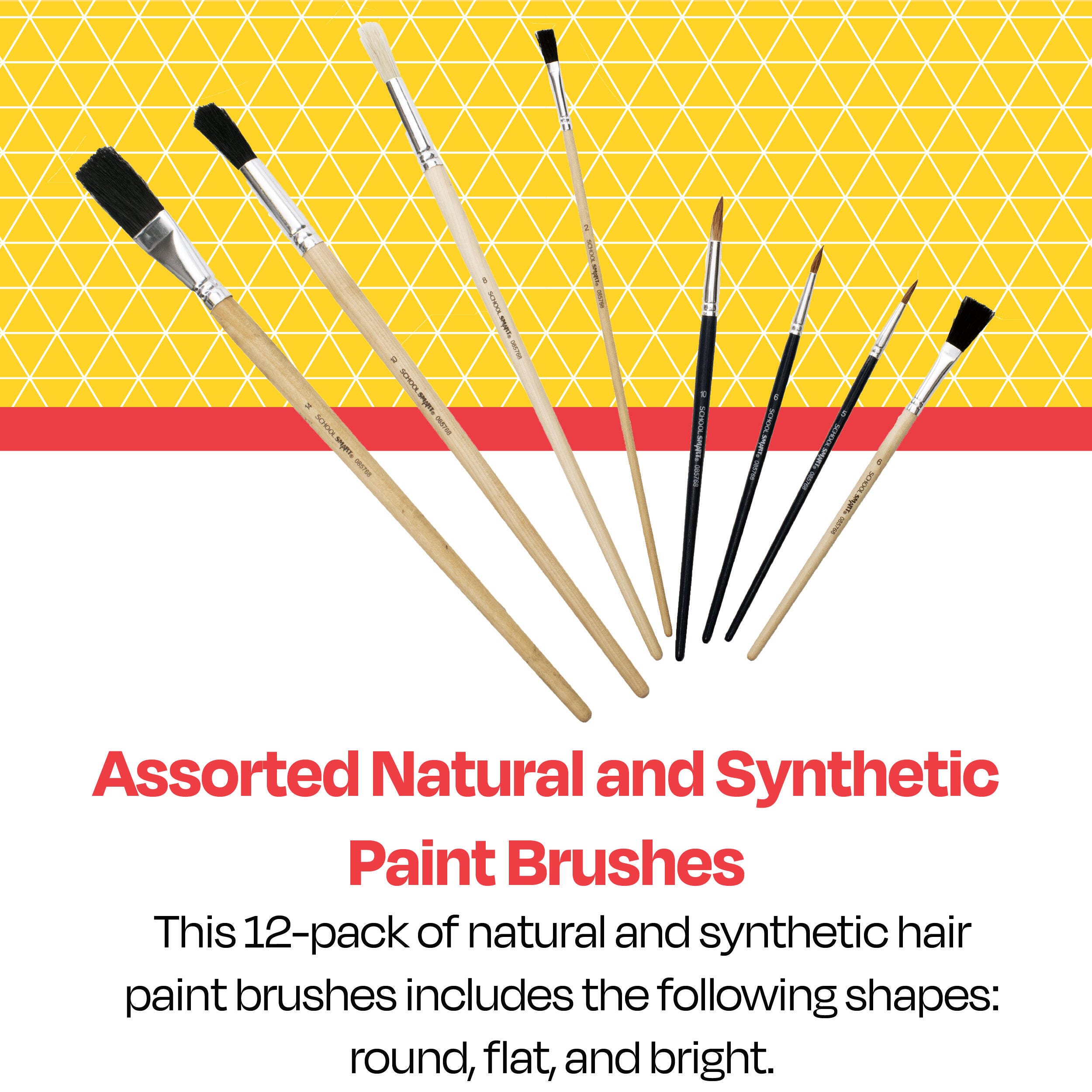 School Smart Paint Brush Assortment, Natural and Synthetic, Set of 12