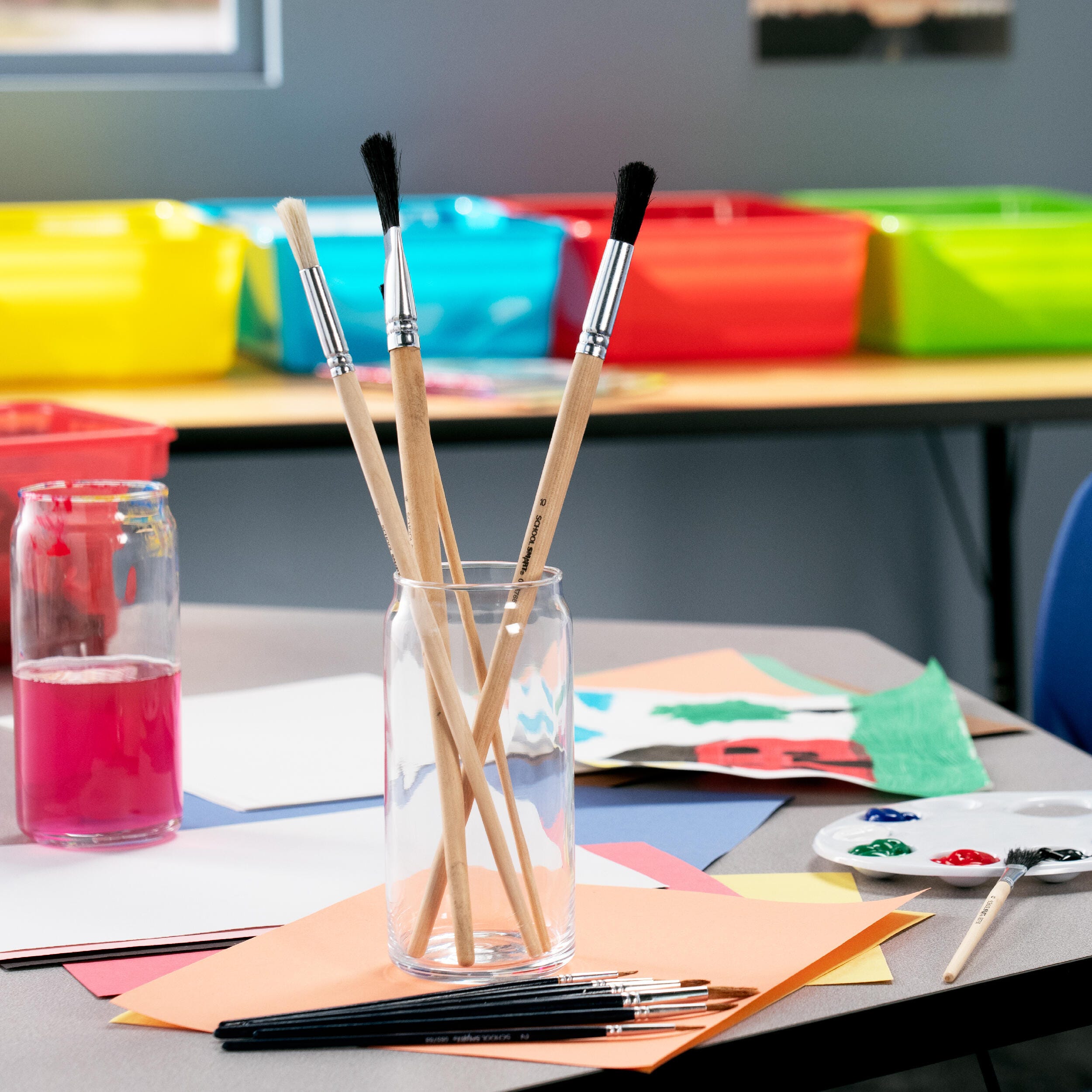 Stock your art room with budget-friendly classroom paint brushes by School Smart. This assortment of natural and synthetic paint brushes is great for schools, recreation centers, and studios. Our economy art brushes come in natural and synthetic bristles in the following shapes: round, flat, and bright. Use the versatile brush set with watercolor, oil, acrylic paint, and more.