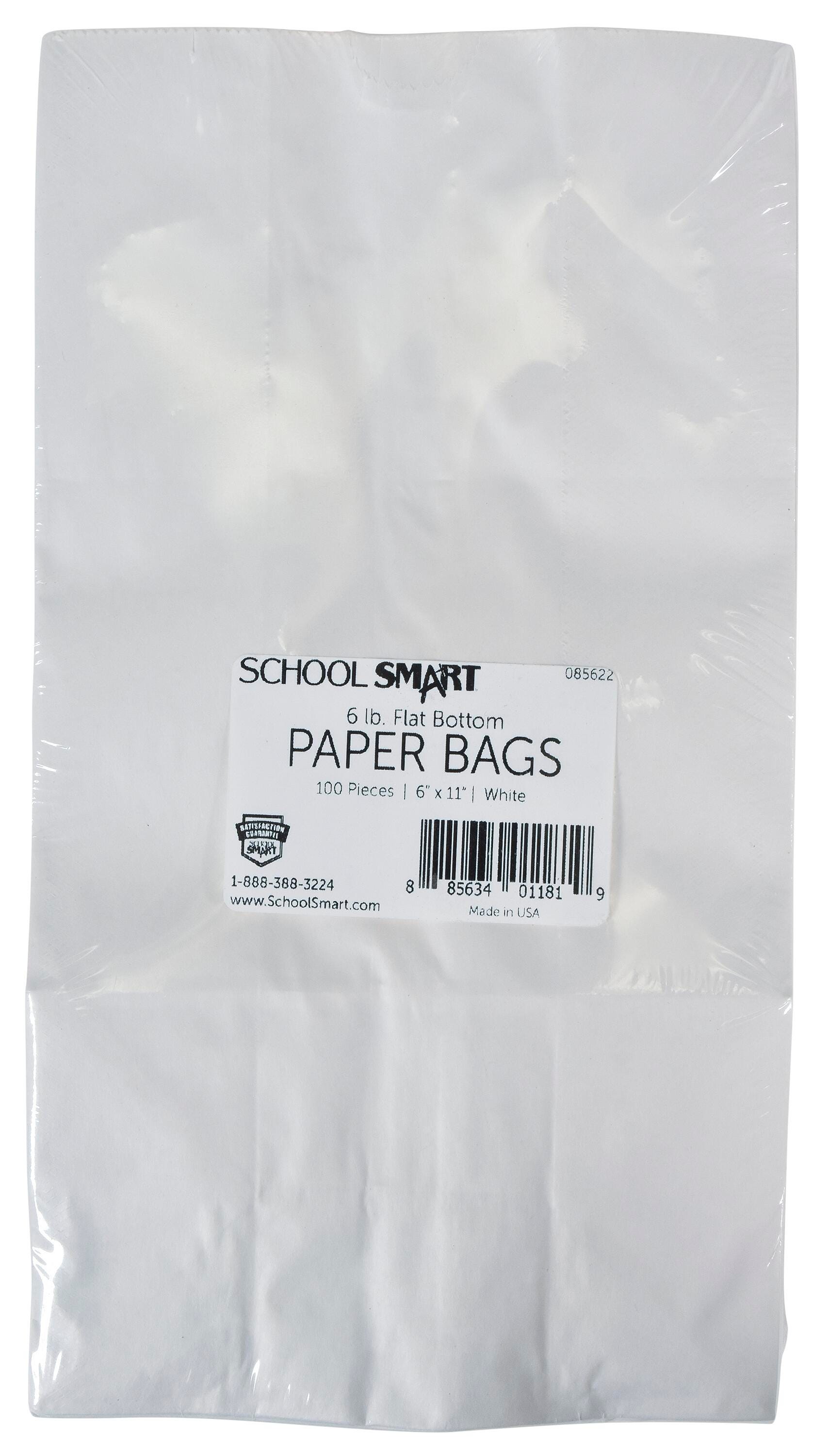 School Smart Paper Bags with Flat Bottom, 6 x 11 Inches, White, Pack of 100