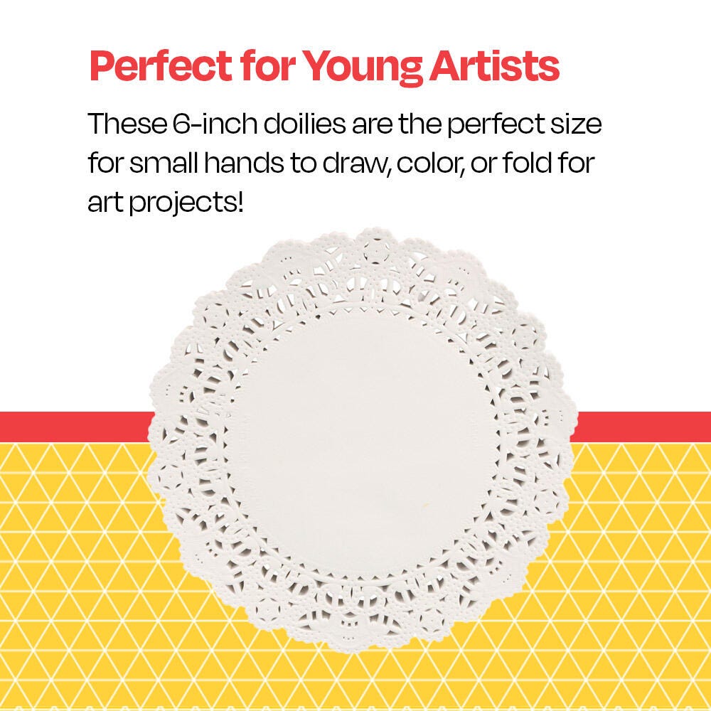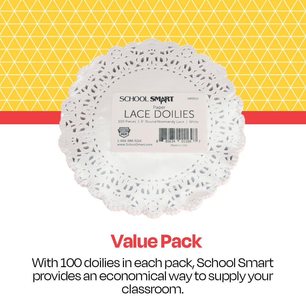 School Smart Paper Die Cut Round Lace Doily, 6 Inches, White, Pack of 100