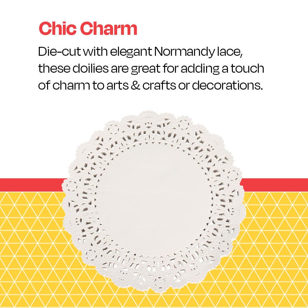 These Round Paper Doilies from School Smart feature a precisely die-cut lace design and measure 6 inches each. These doilies are great for arts and crafts, designing greeting cards, home decorating, and more. Add an elegant touch to any project! Sold as a pack of 100 to provide excellent value for your classroom or office.