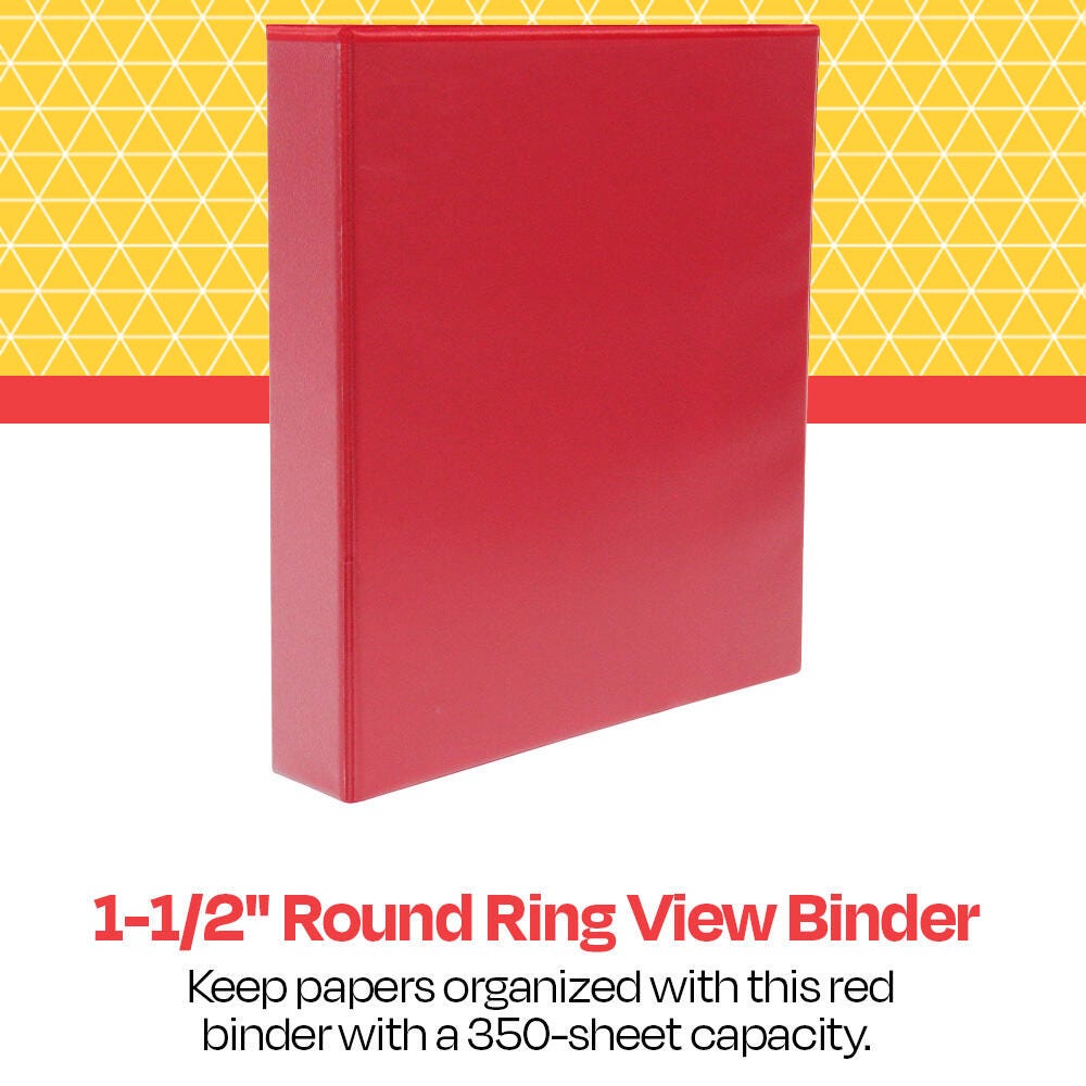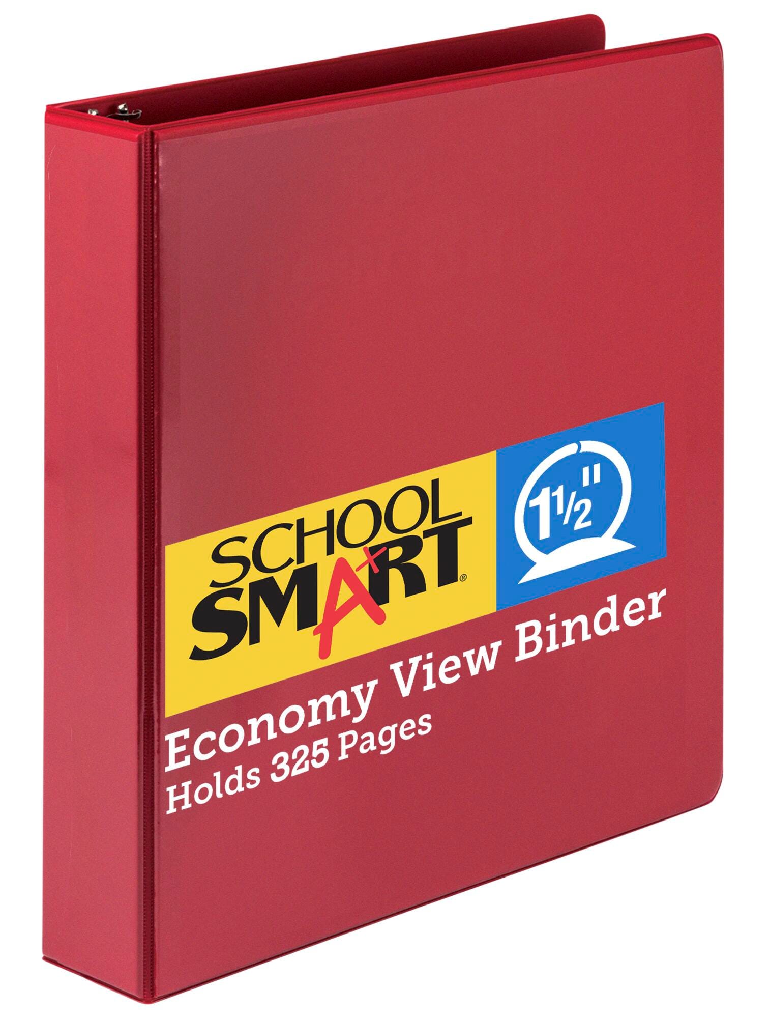 School Smart Polypropylene Round Ring View Binder, 1-1/2 Inches, Red