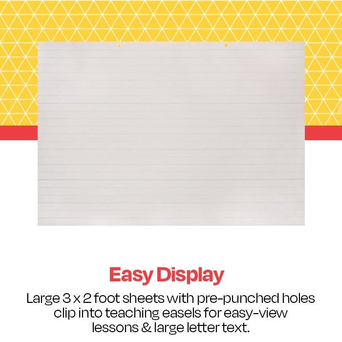 • Two small holes punched at top of story picture paper allows you to easily attach sheets to teaching easel or bulletin board