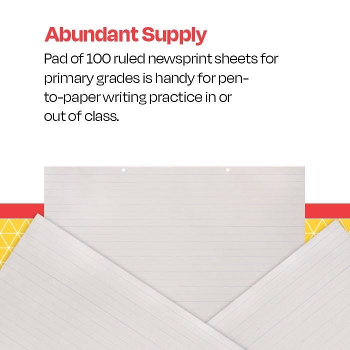 Designed with primary grades in mind, simplify writing with newsprint pads from School Smart! These chart pads are bound on top and punched with two holes for easy hanging on bulletin board tacks, nails, or teacher easels. The paper, with a 15 lb. weight basis, is 1-inch ruled the long way on both sides. This newsprint paper is great for doing student presentations, handwriting practice, and showcasing big notes at the front of the class. Best for Grades K to 3. Each sheet measures 36 x 24 inches. Sold as one pad with 100 sheets of paper.