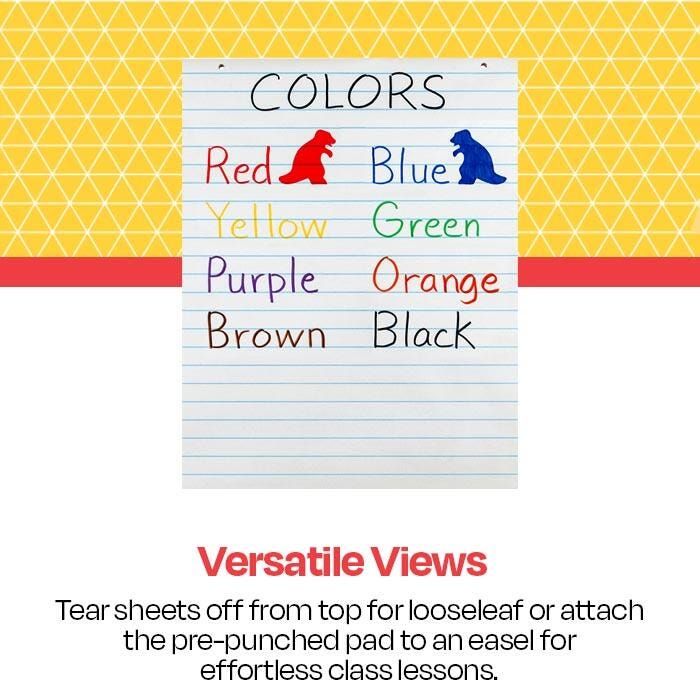Designed with primary grades in mind, simplify writing with newsprint pads from School Smart! These chart pads are bound on top and punched with two holes to allow for easy hanging on bulletin board tacks, nails, or teacher easels. The paper, with a 15 lb. weight basis, is 1-inch ruled the short way on both sides. This newsprint paper is great for doing student presentations, handwriting practice, and showcasing big notes at the front of the class. Best for Grades K to 3. Each sheet measures 18 x 24 inches.