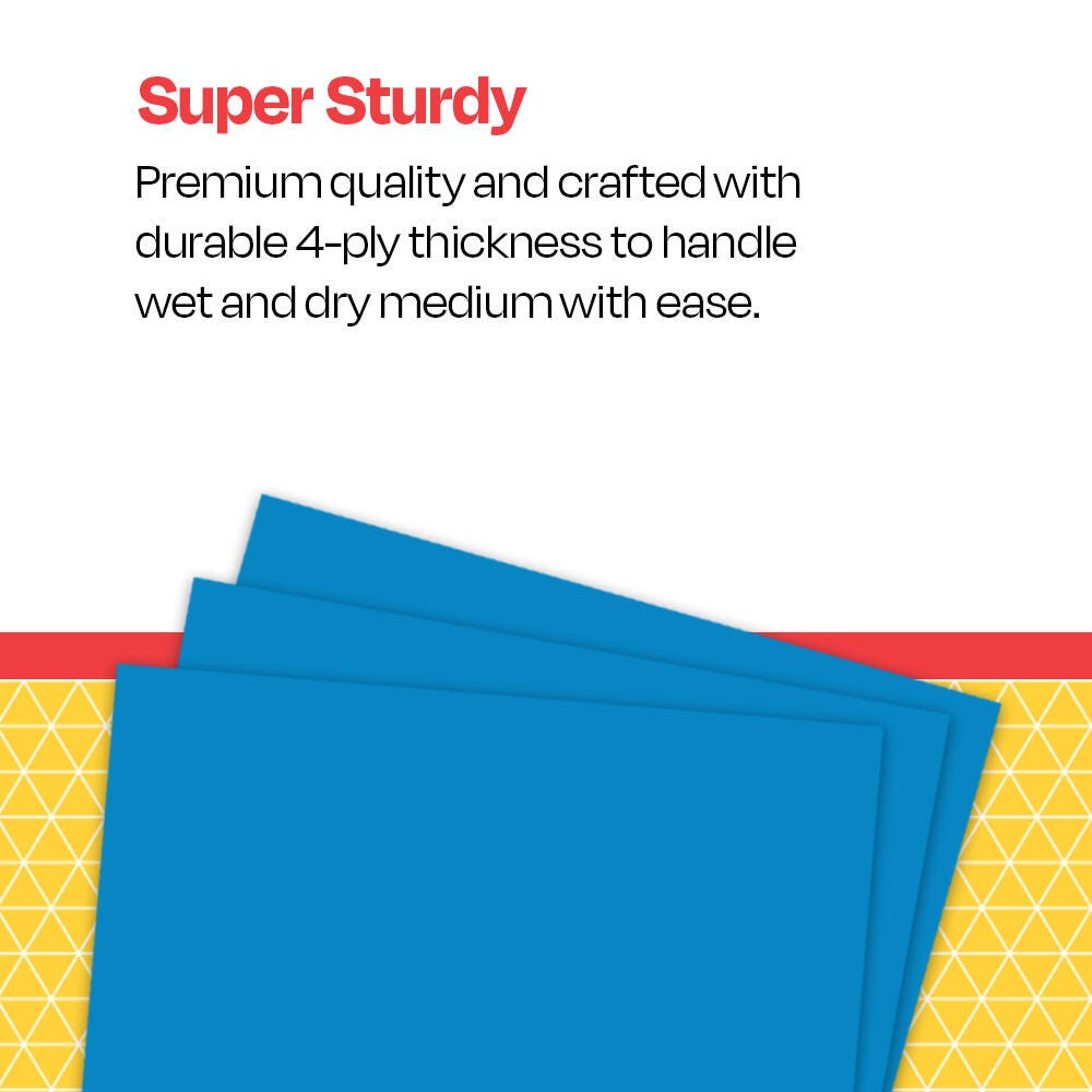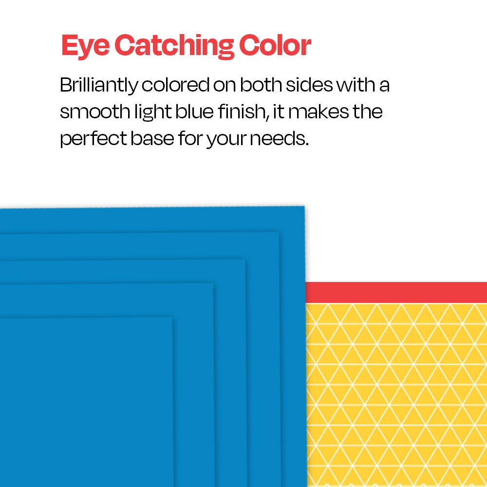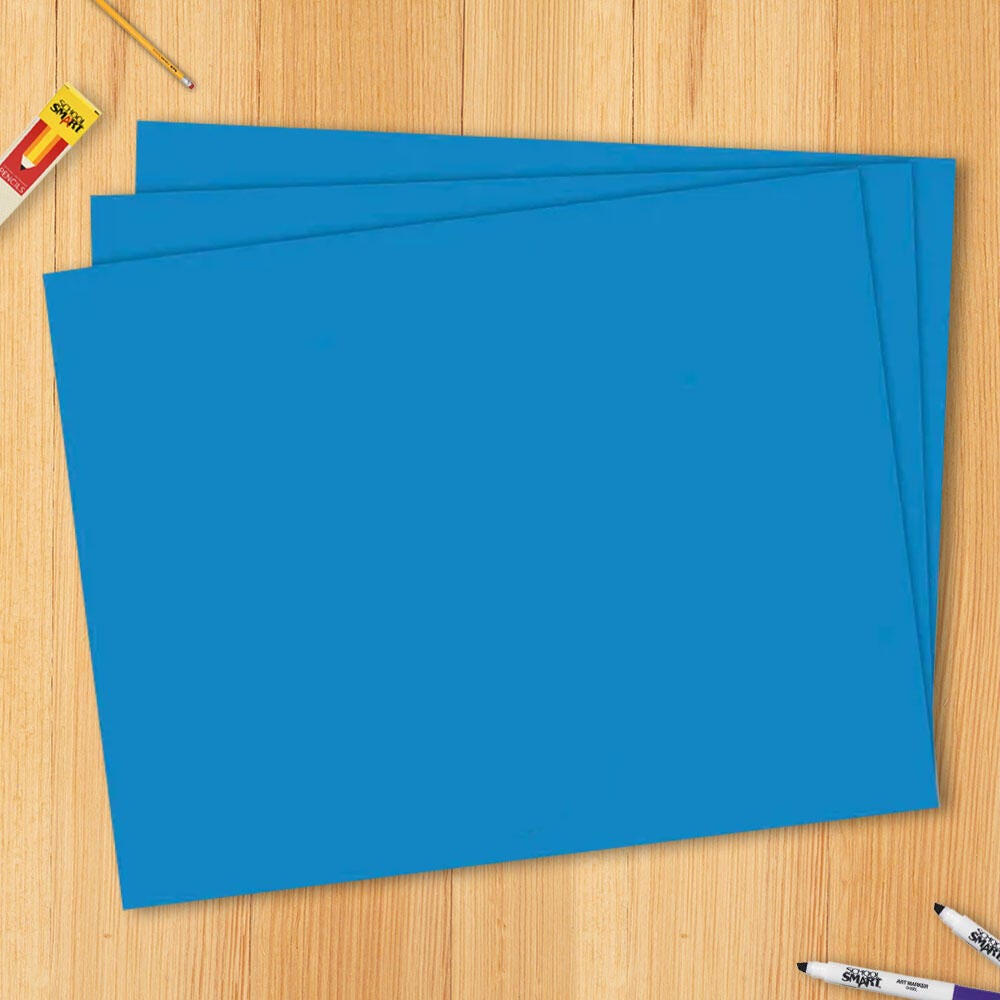 School Smart 4-Ply Light Blue Railroad Board, measuring 22 x 28 inches, is the ideal choice for any creative project and has a smooth uniform finish. Board colored on both sides is perfect for construction, art projects, mats, mounting, block printing, painting, markers, stenciling, and posters. These brightly colored boards are sold as 25 per pack.
