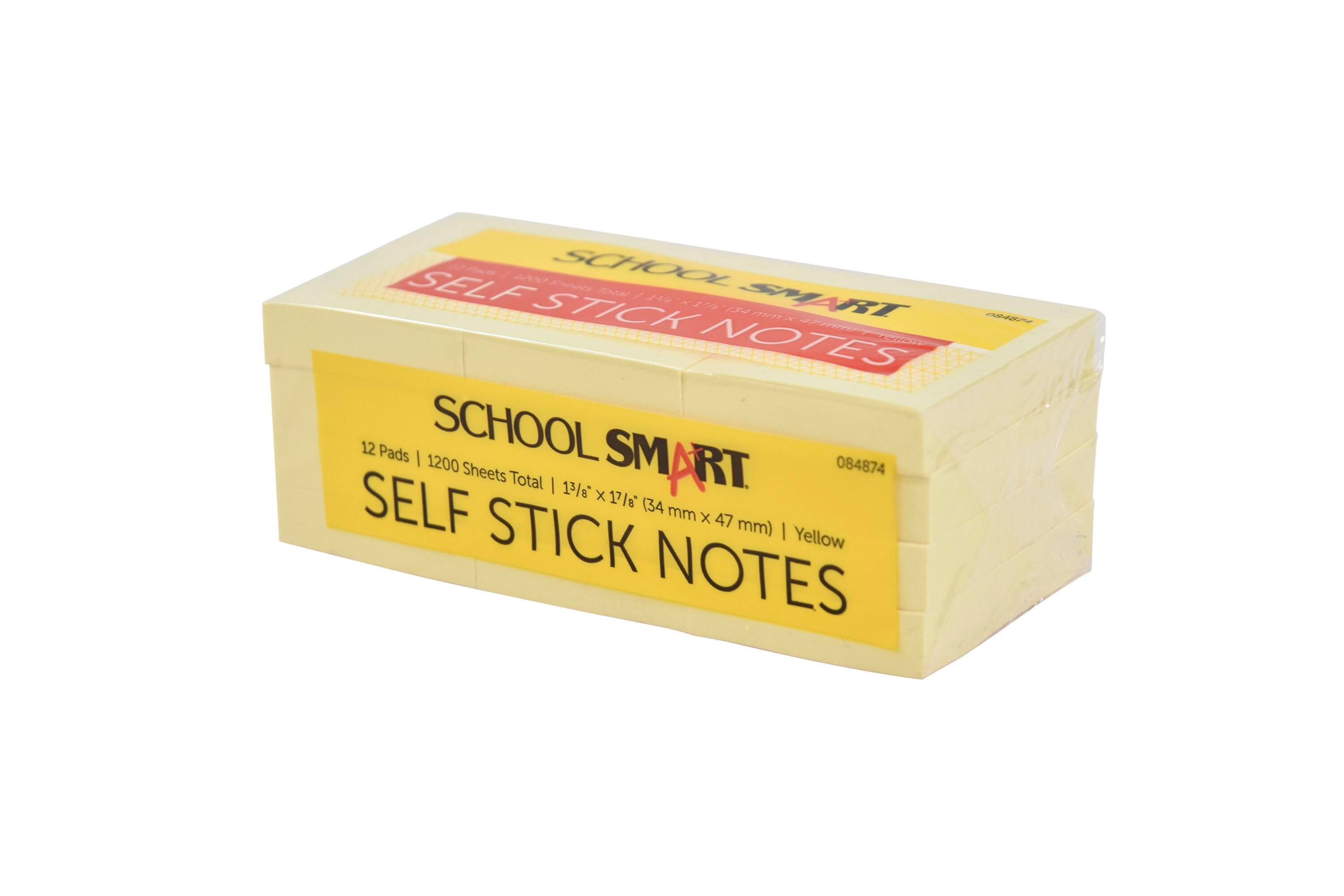 • School Smart Removable Self-Stick Note, 1-1/2 X 2 Inches, Yellow, 100 Sheet Pads, Pack of 12