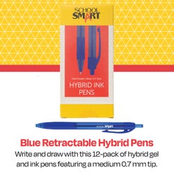 School Smart Retractable Hybrid Gel and Ink Pens, Blue, Pack of 12