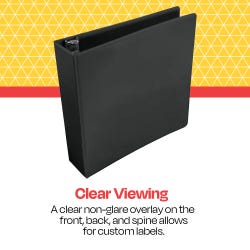 - Non-glare, PVC-free overlay on the front, back, and spine covers allows for customization on all three sides while ensuring ink from printed materials does not smear or transfer onto the binder