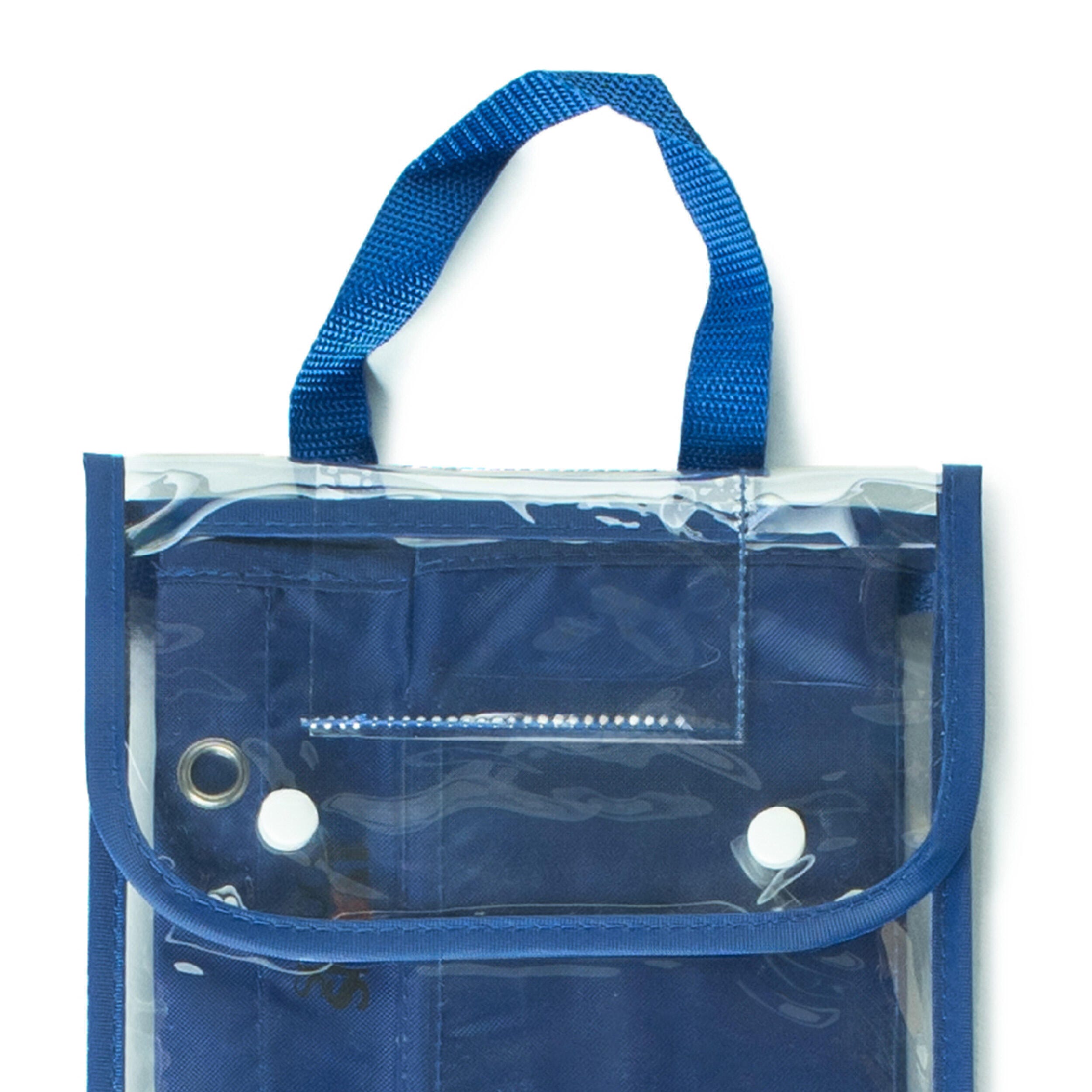 Put key lessons on display with the School Smart sentence strip pocket chart. This chart makes posting word and grammar examples, and directions clear and easy to see. The large nylon fabric design features 6 clear-view horizontal slip pockets (one largest at top for inserting in title or objective) and 4 ample pouches near the bottom for adding in graphic examples. This pocket chart can also store extra cards or school supplies. Durable metal grommets at the top allow you to easily hang the chart from a curtain pole, bulletin board, and more. The full pocket chart measures 44-1/2 L x 28 W inches.