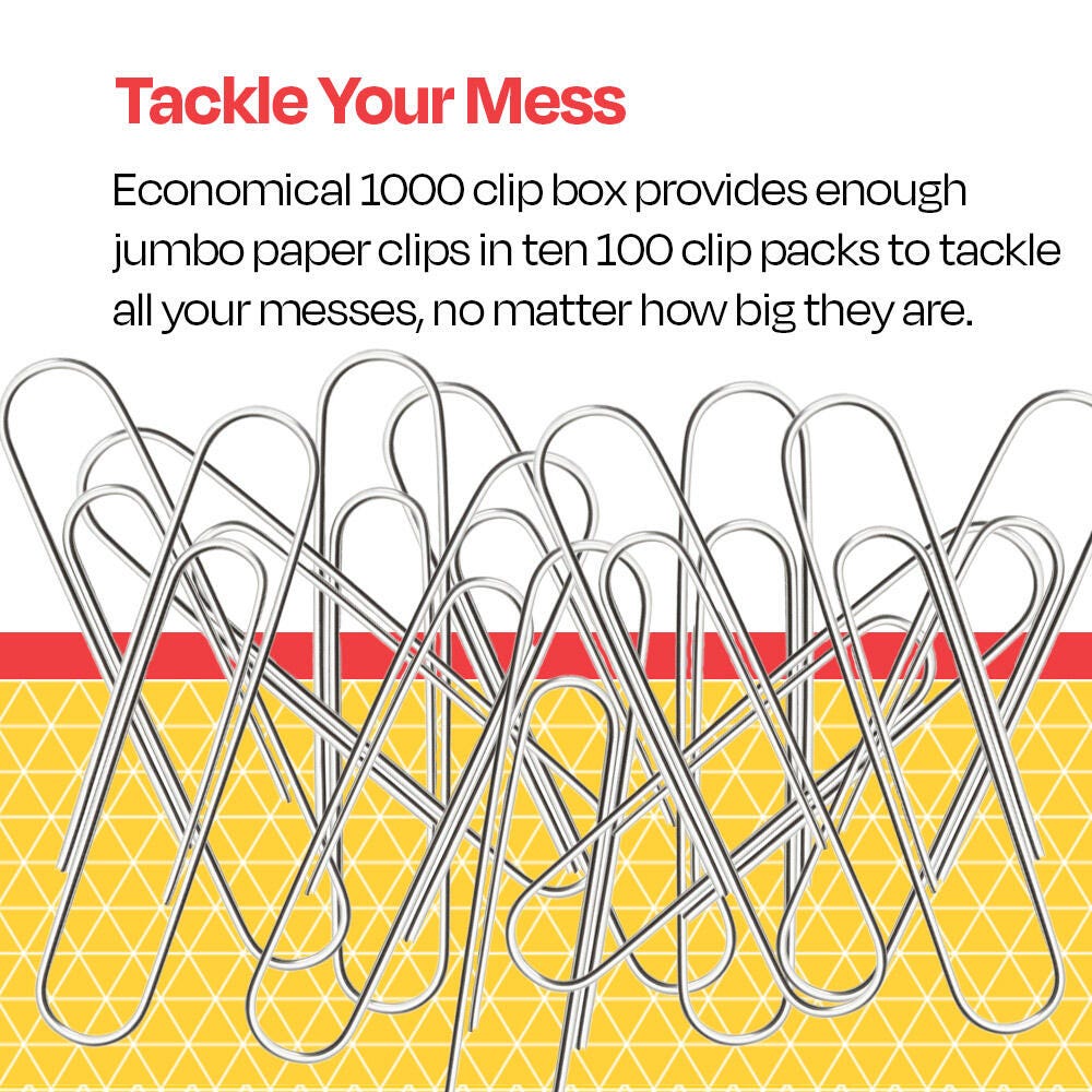 Transform your workspace with the School Smart Smooth Paper Clips made from the highest quality steel and perfect for home, school, or office. These 2 inch jumbo clips feature a bright, corrosion-resistant finish. Sold as a total of 1000 paper clips that are separated into 10 packs of 100 paper clips each.
