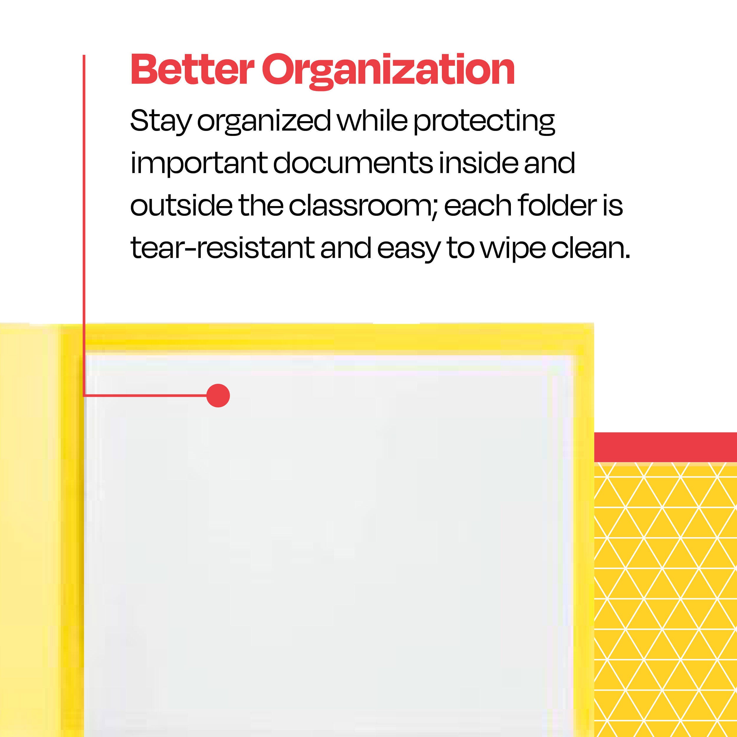 • Tear-resistant materials also help deter dirt and humidity to keep your folders looking new