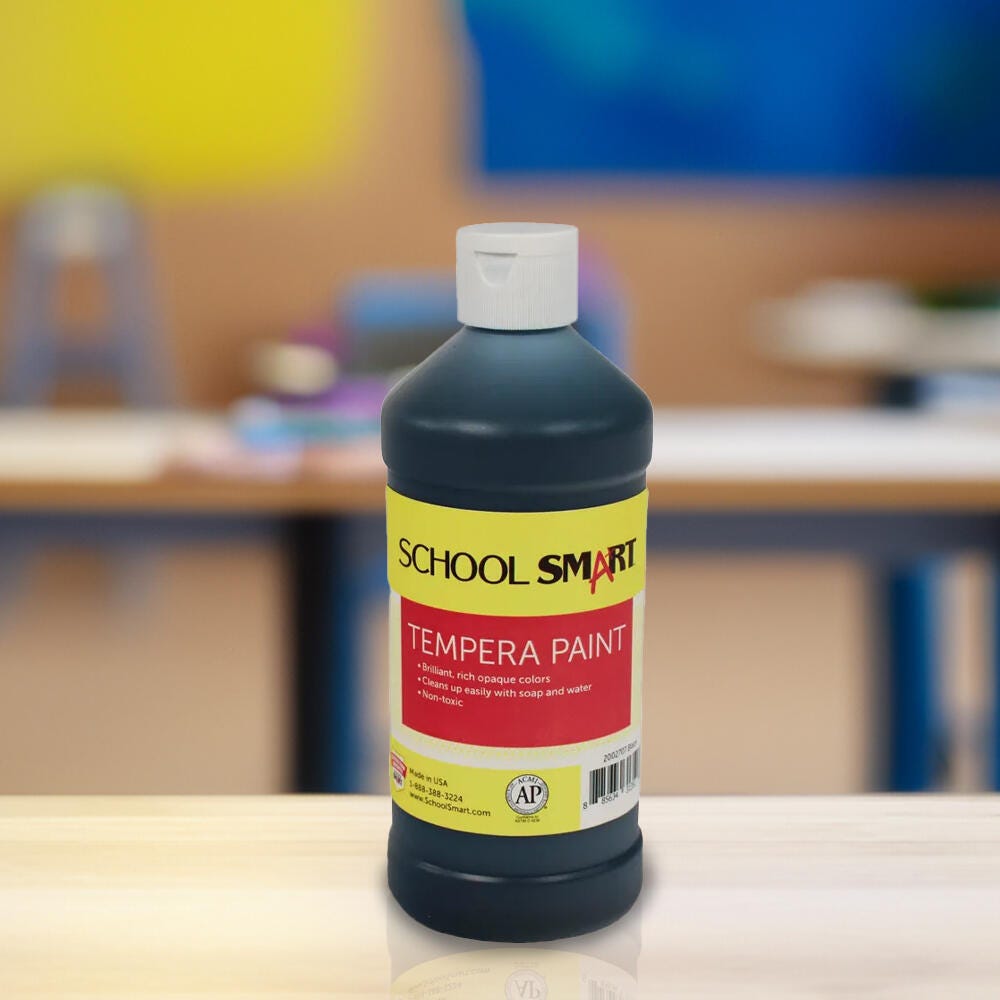 This School Smart traditional tempera paint comes in a black color. The bottle of black tempera paint is great for classrooms, schools, art classes, and after school programs. Our brilliant and rich opaque paint color offers students endless creativity and color blending possibilities. The non-toxic tempera paint cleans up easily with soap and water and won’t chip, flake, or crack when dry.