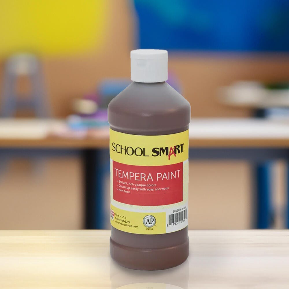 This School Smart traditional tempera paint comes in a brown color. The bottle of brown tempera paint is great for classrooms, schools, art classes, and after school programs. Our brilliant and rich opaque paint color offers students endless creativity and color blending possibilities. The non-toxic tempera paint cleans up easily with soap and water and won’t chip, flake, or crack when dry.