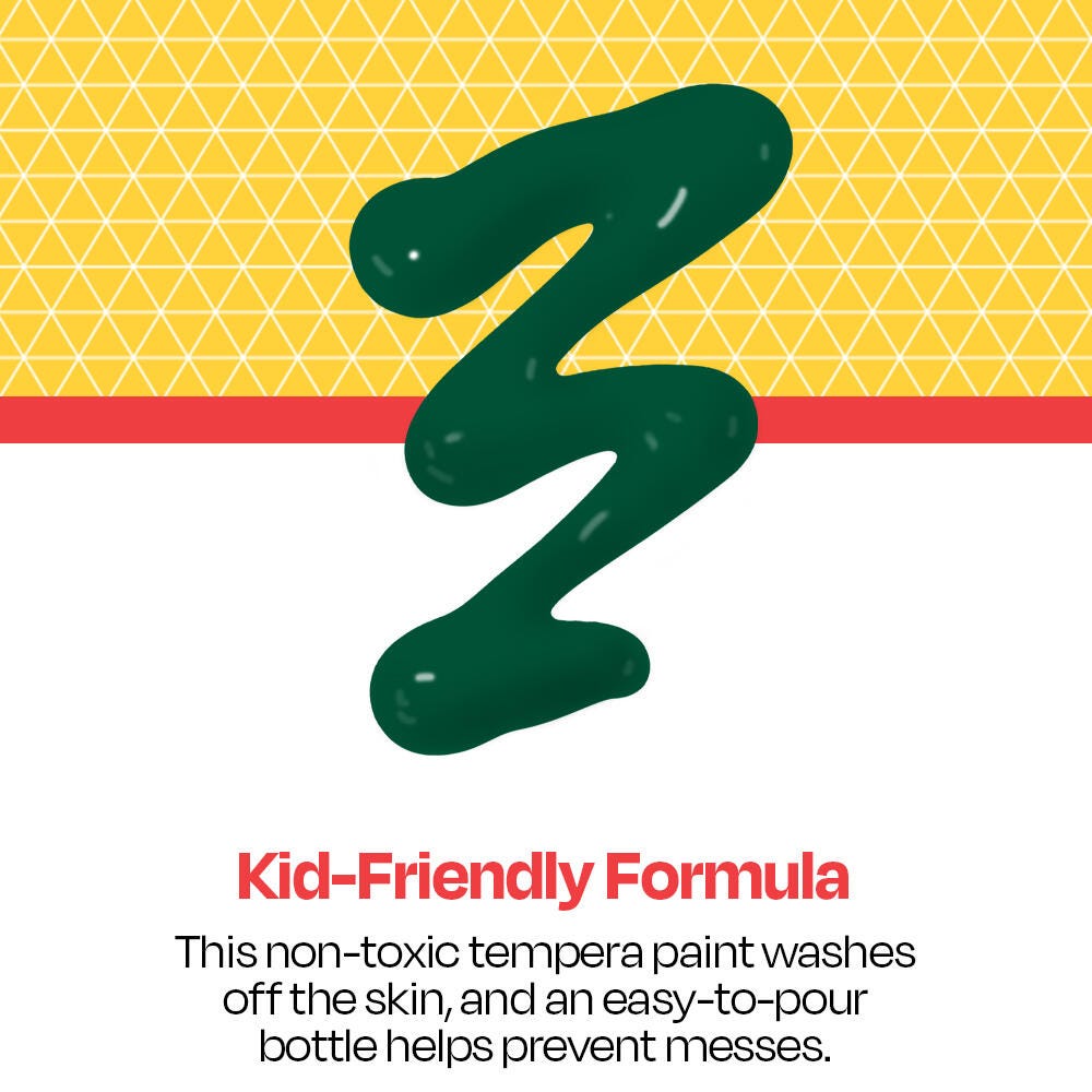 This green tempera paint comes in a 1 quart bottle for schools and classrooms.