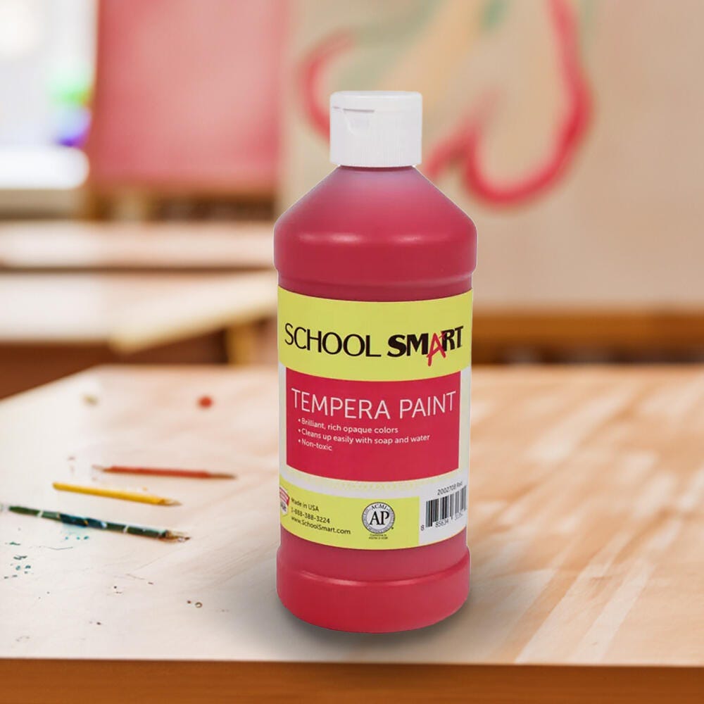 This School Smart traditional tempera paint comes in a red color. The bottle of red tempera paint is great for classrooms, schools, art classes, and after school programs. Our brilliant and rich opaque paint color offers students endless creativity and color blending possibilities. The non-toxic tempera paint cleans up easily with soap and water and won’t chip, flake, or crack when dry.