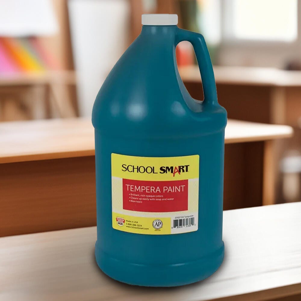The School Smart traditional tempera paint gallon comes in a turquoise color. This paint is an economical value size bottle for classrooms and childcare centers. Our brilliant and rich opaque paint color offers students endless creativity and color blending possibilities. The non-toxic tempera paint cleans up easily with soap and water and won’t chip, flake, or crack when dry. This large bottle of turquoise tempera paint is great for classrooms, schools, art classes, and after school programs.