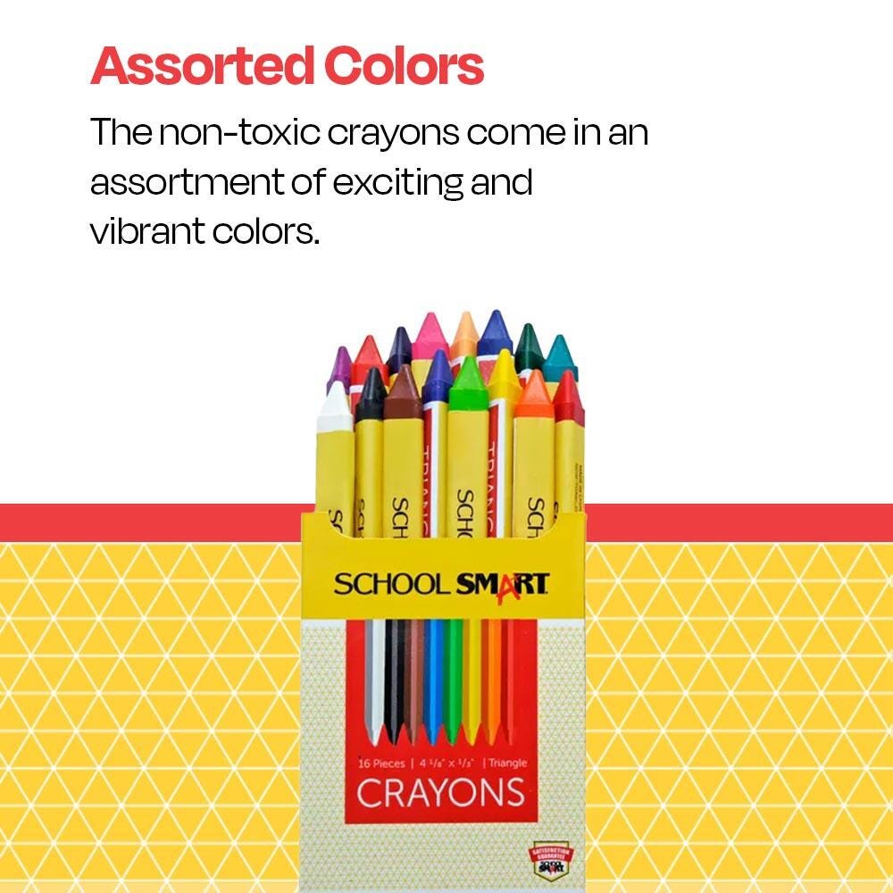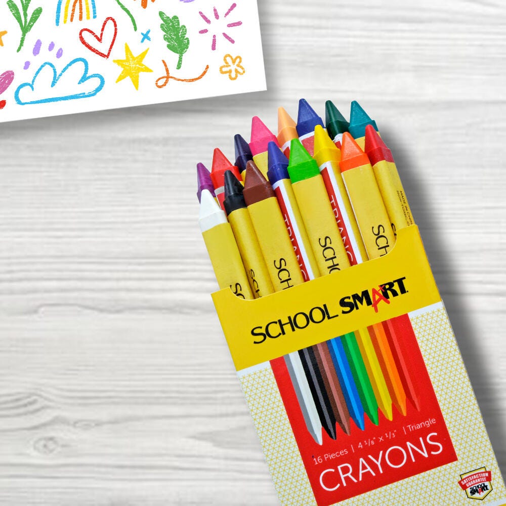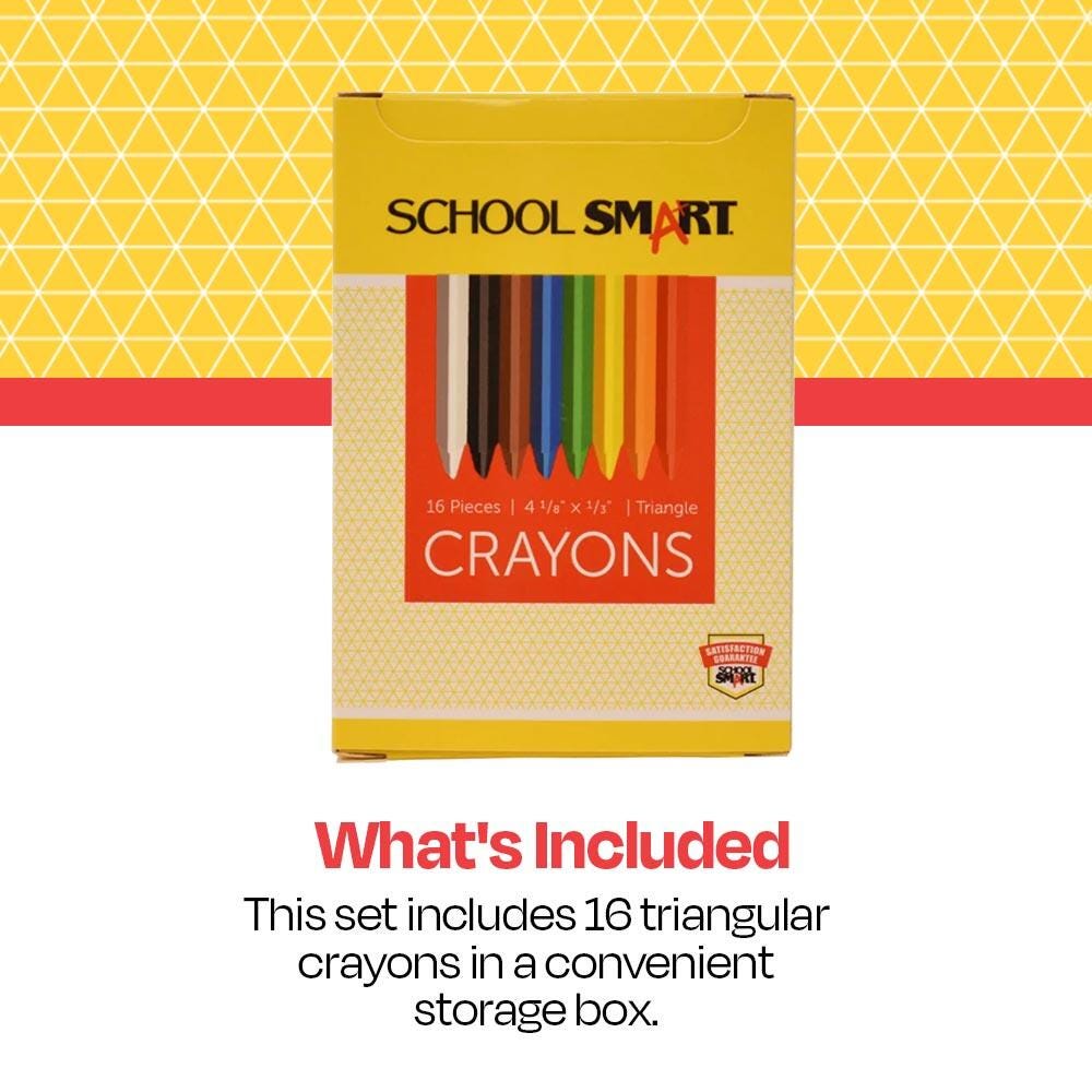 • School Smart Triangular Crayons, Assorted Colors, Set of 16