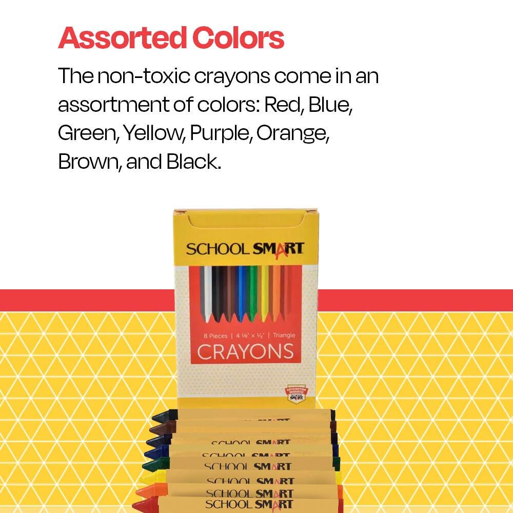 Triangle crayons are the perfect shape for toddlers and young learners, and the School Smart triangular crayons are ideal for preschool, kindergarten, and elementary school. The triangular shape is easy to grip and won’t roll off desks or tables.