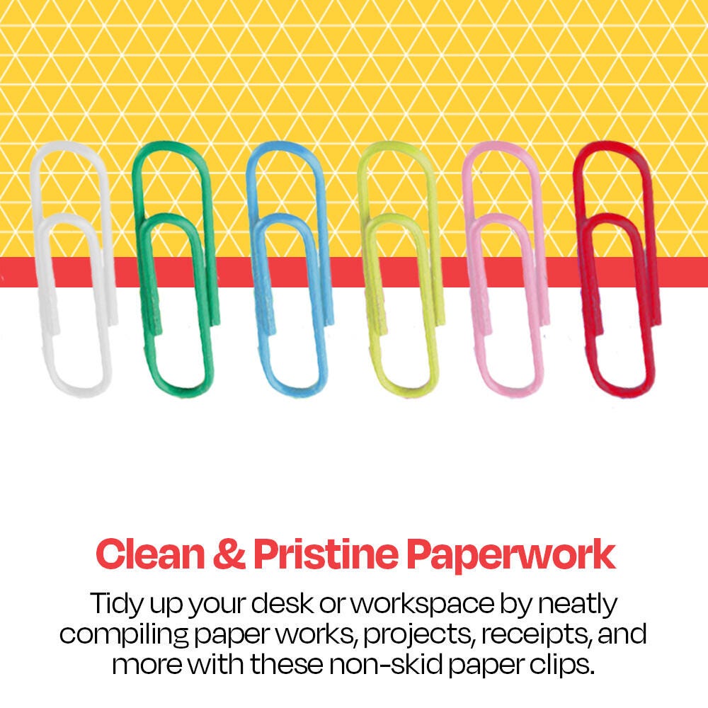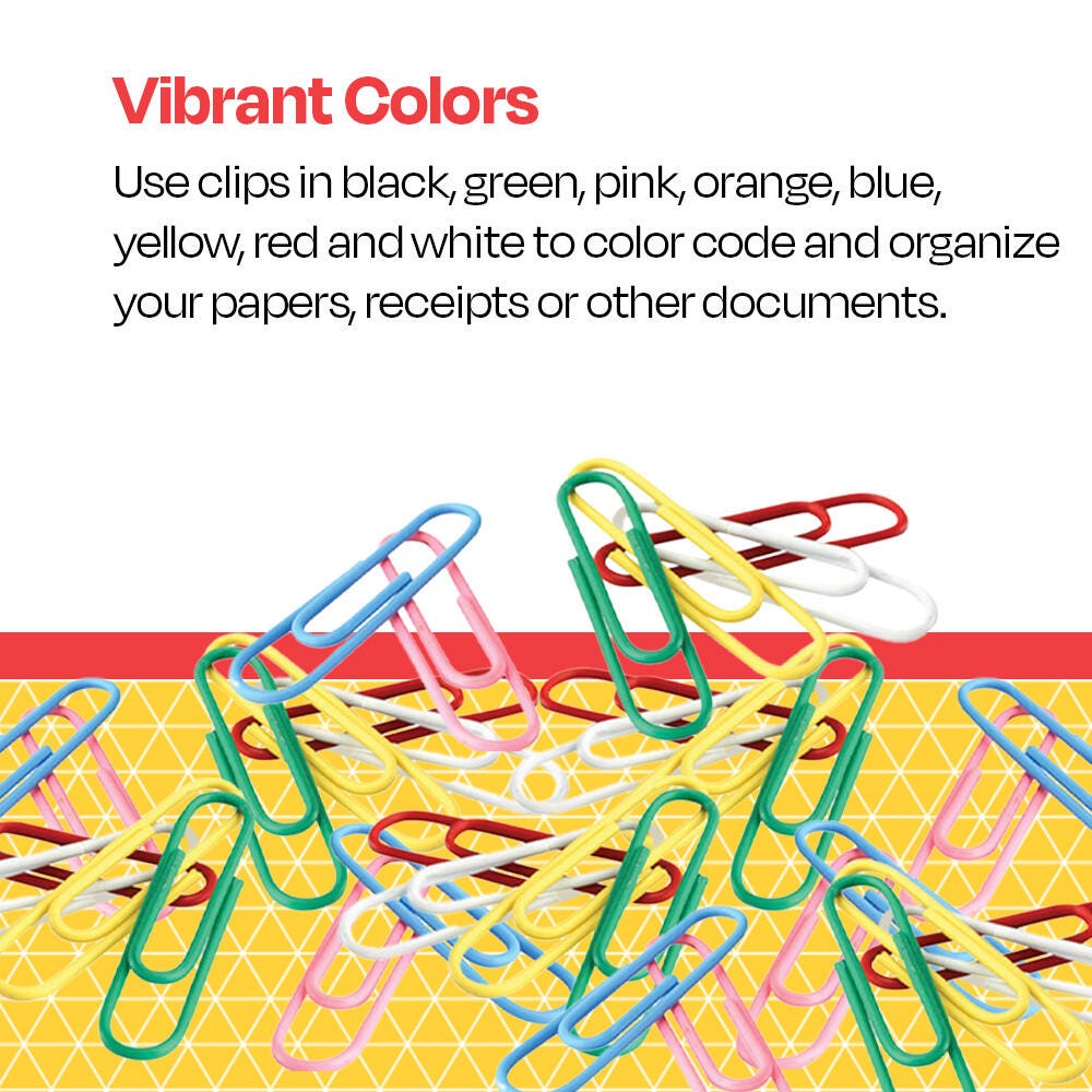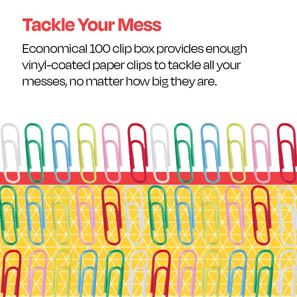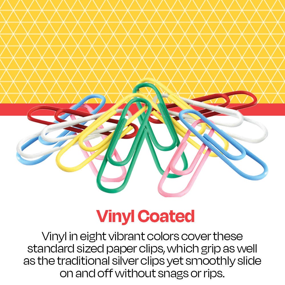 Add fun and function to your office supplies with colorful Paper Clips from School Smart. These handy paper clips have a colorful vinyl coating for rust-resistance and durability and measure 1-1/4 inches. Their smooth surface helps prevent snags and marks on your paperwork. There 100 per pack in an assortment of bright colors for filing, grading, document transport, organization, arts and crafts, and more.