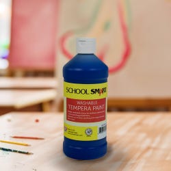 The School Smart washable tempera paint comes in a blue color. This bottle of blue tempera paint is great for classrooms, schools, art classes, and after school programs. The brilliant and rich opaque paint color offers students endless creativity and color blending possibilities. Our non-toxic tempera paint cleans up easily with soap and water and won't chip, flake, or crack when dry.