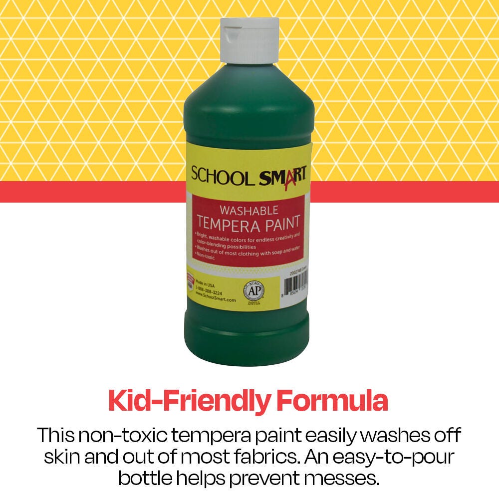 School Smart Washable Tempera Paint, Green, 1 Pint Bottle