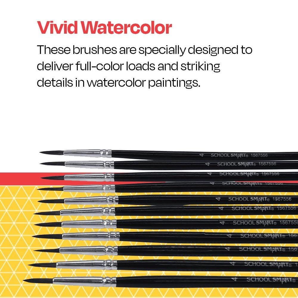 School Smart watercolor brushes with long handles are handcrafted with high-quality, durable materials. Each watercolor paint brush is designed to help you express your creativity in classrooms or at home. Made with smooth aluminum ferrules, each art brush carries a full-color load and points well to create better detail. Whether you're an enthusiastic beginner or an experienced creative, these paint brushes for watercolor help create intricate masterpieces.Features