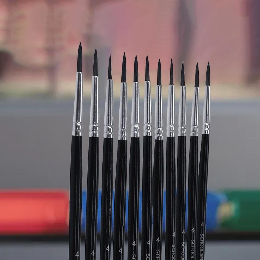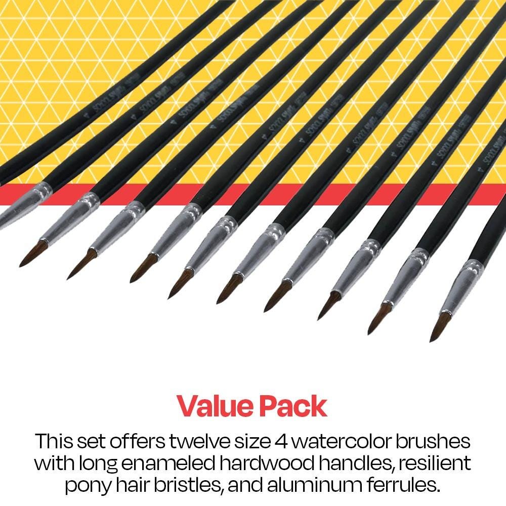 - 12 Watercolor Paint Brushes with Long Handles, Size 4