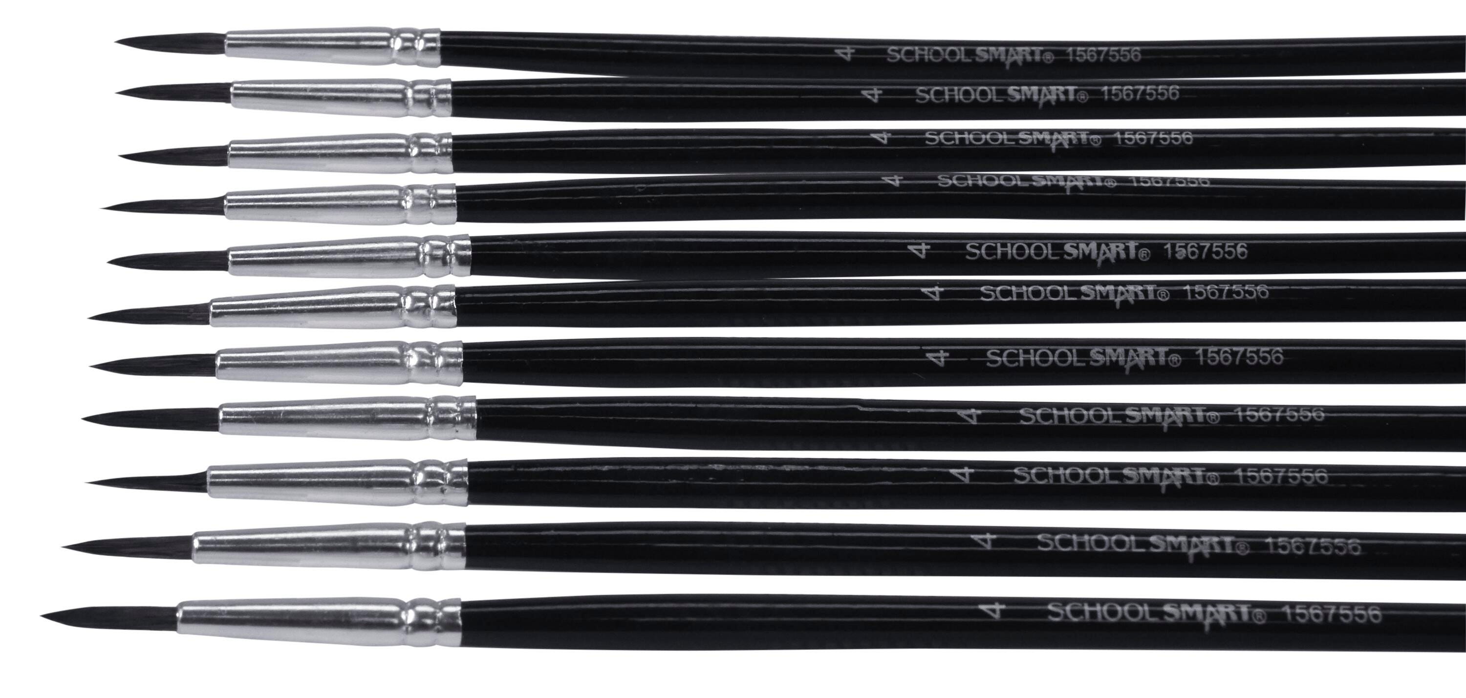 School Smart Watercolor Paint Brushes, Long Handle, Size 4, Set of 12