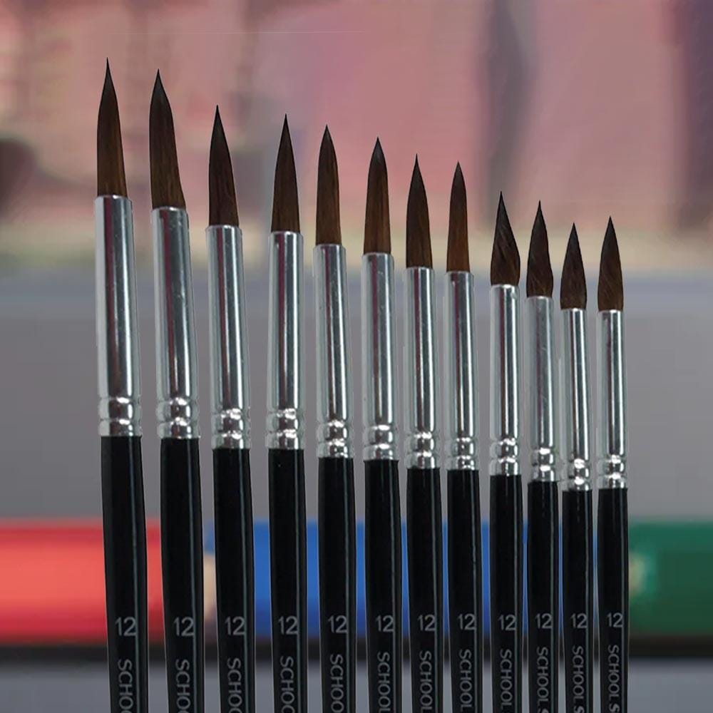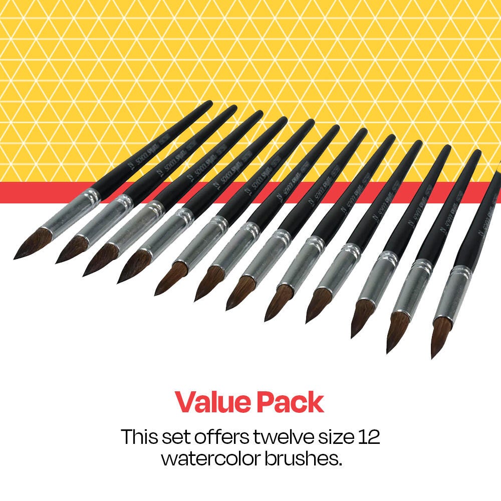 12 Watercolor Paint Brushes in Size 12