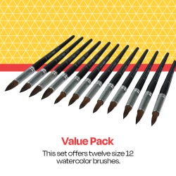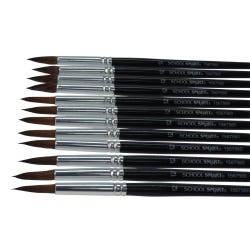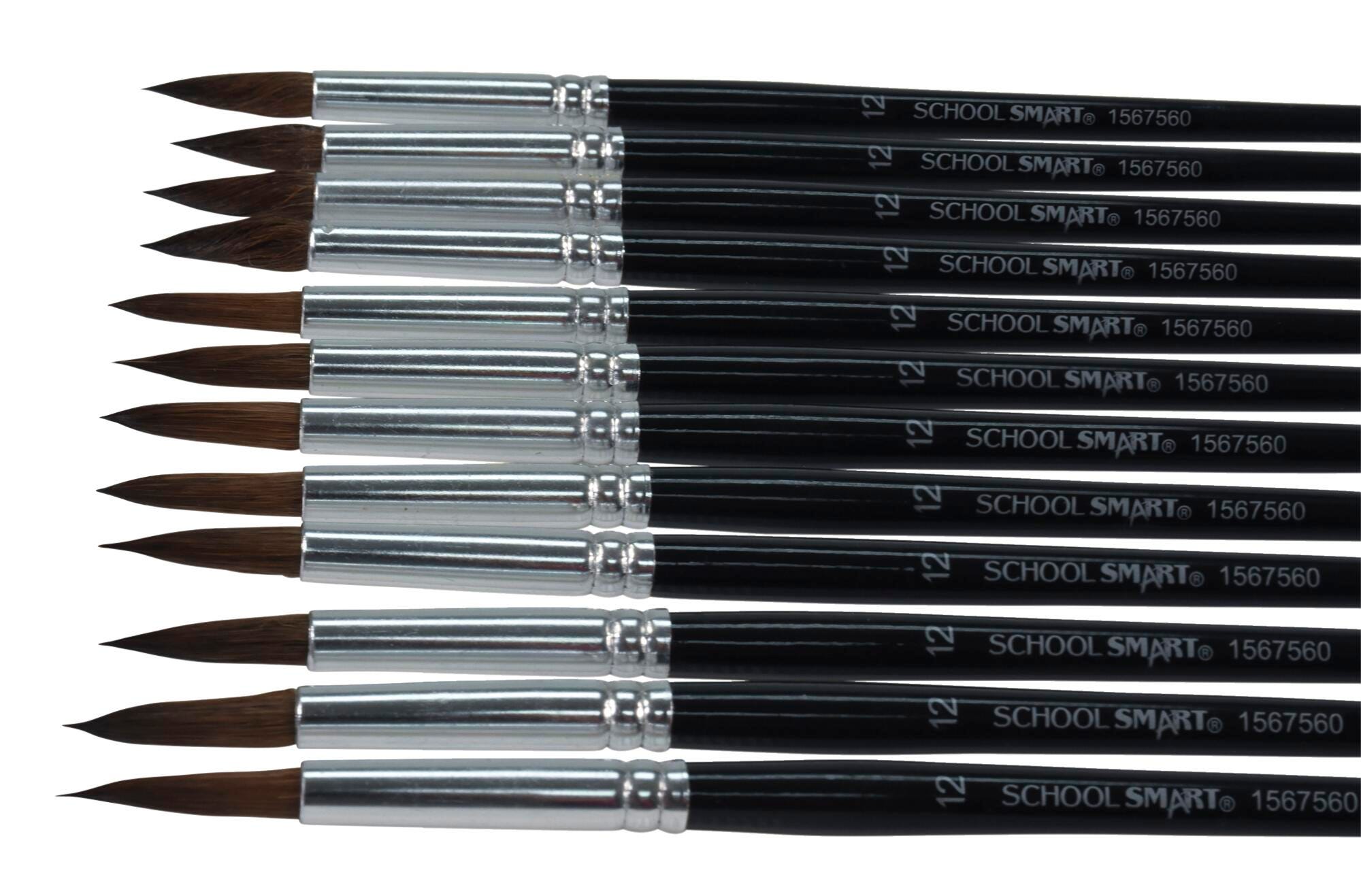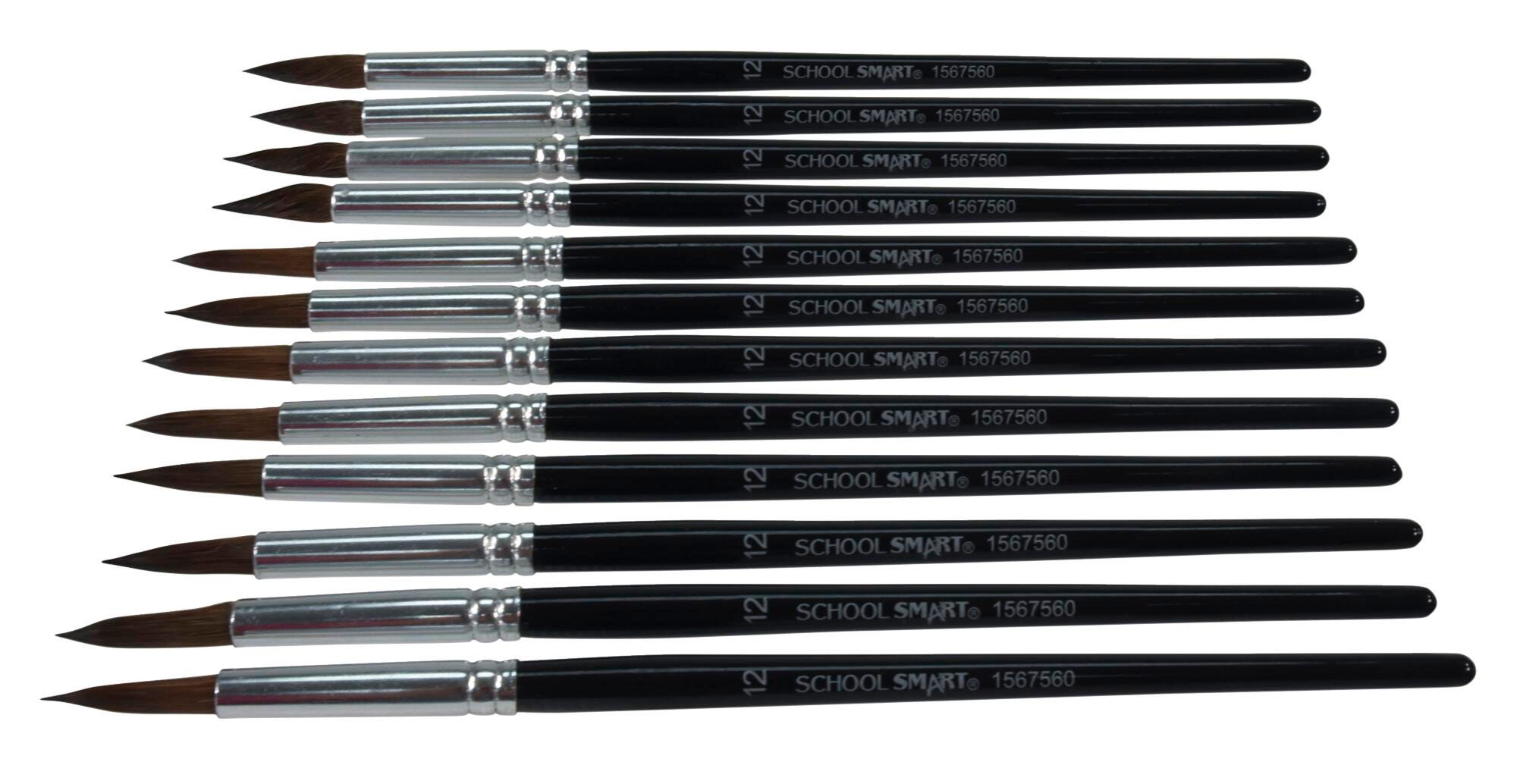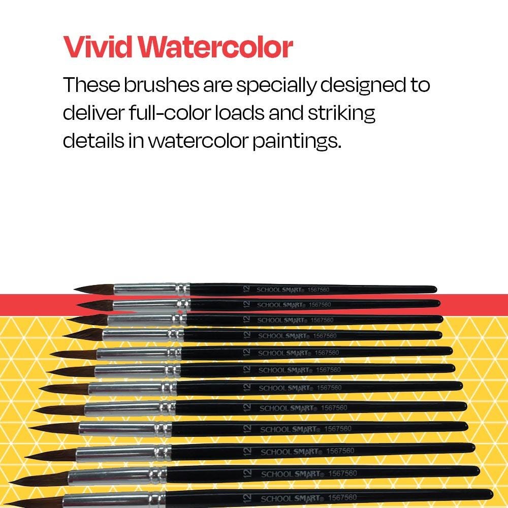 School Smart Watercolor Paint Brushes, Short Handle, Size 12, Set of 12