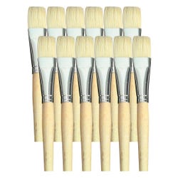 Great for a variety of mediums, the School Smart white bristle, flat paint brush set includes 12 traditional wooden brushes. The short handled brushes have interlocked bristles in seamless, smooth aluminum ferrules. Easy to use and hold, the hardwood handle is clear coated. The set comes at an affordable price for school classrooms and recreation centers.