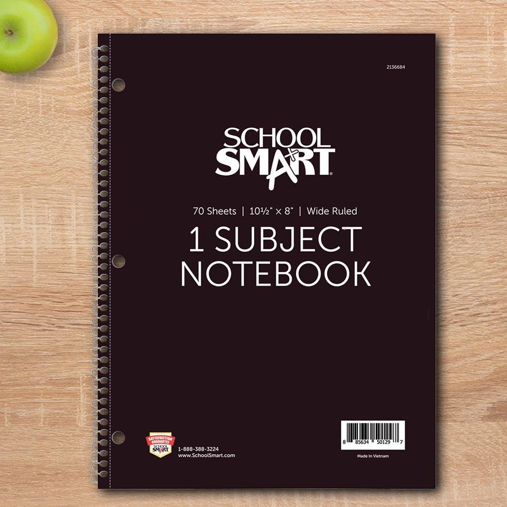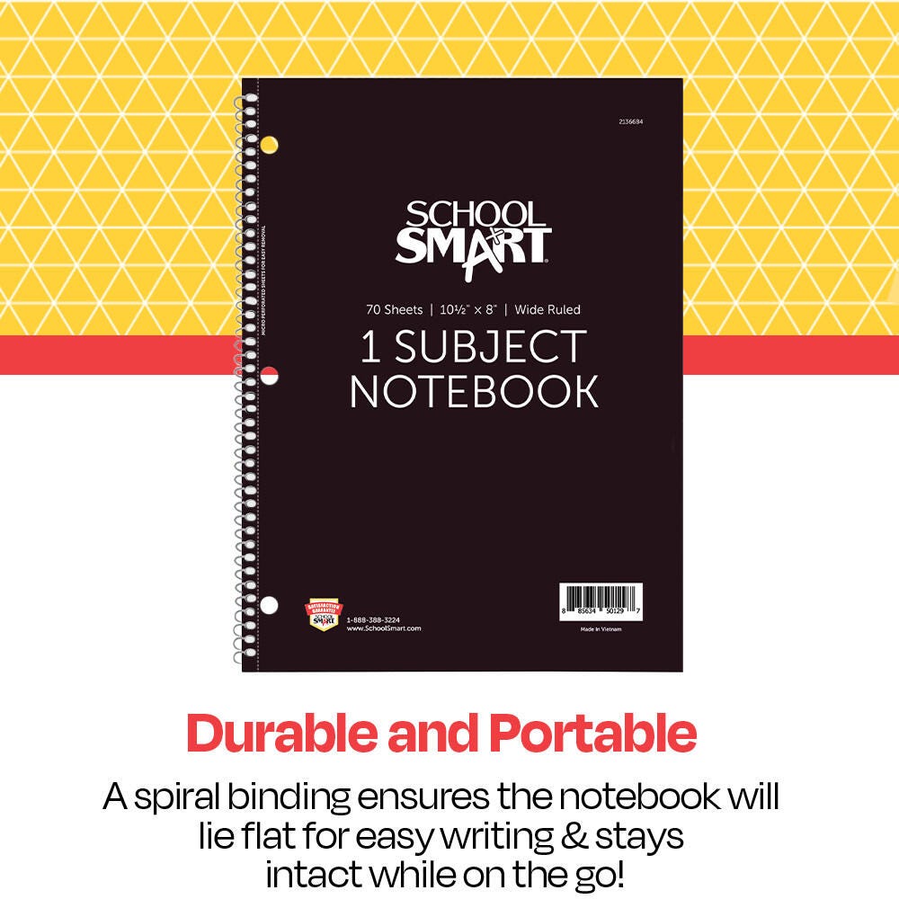 School Smart Wide Ruled Spiral Notebook, 8 x 10-1/2 Inches, 1 Subject, Black, 70 Sheets