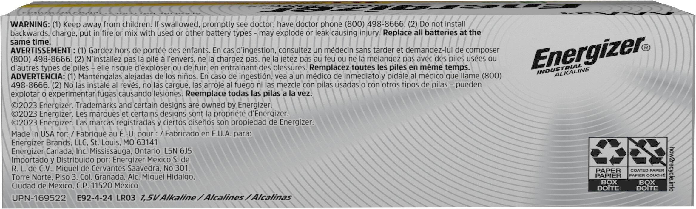 Energizer Industrial Alkaline AAA Batteries, Pack of 24