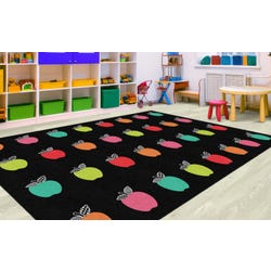 This Schoolgirl Style classroom carpet will be the apple of everyone's eye when they enter your space. It's perfect educational accent featuring colorful apples on a black background. Rectangle rug is available in several sizes.