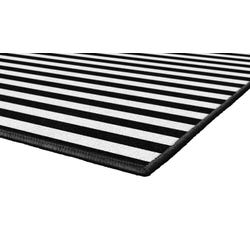 Schoolgirl Style brings this black-and-white striped classic design to your space with an area rug that's durable for high-traffic areas, yet soft and stain-resistant to be used for floor seating. This rectangle carpet is available in several sizes.