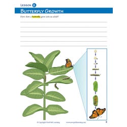 This lesson covers: Main Parts of Plants; Plant Growth; Bean Plant Life Cycle; Animals; Animal Growth & Reproduction; Frog Life Cycle; Butterfly Life Cycle; Dragonfly Life Cycle; Inheritance of Traits; and Vocabulary.