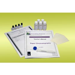Chromatography is the oldest documented technique to separate chemical substances. In this activity, students will perform paper chromatography on three individual dyes and a mixture of dyes to determine if all three dyes are in the mixture. Students will understand not only the components of a chromatography system but also why different substances move at different rates within the system. The kit contains enough materials for 15 groups.Kit Includes:1 Chromatography dye set containing:1 x 0.5 mL Crystal violet1 x 0.5 mL Safranin O1 x 0.5 mL Toluidine blue 1 x 0.5 mL Chromatography mixture5 x 30 mL 95% Ethanol UN117015 Chromatography sheets4 Capillary tubesFeatures