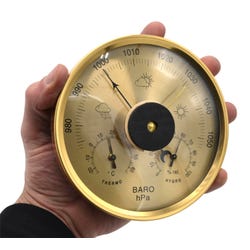 This economically priced 3 in 1 weather station provides convenient weather data in a simple yet classy manner. Round design measures temperature (Celsius), air pressure, and air moisture levels all at the same time, in easy-to-read facing. Diameter of tool measures approximately 5-1/10 inches.