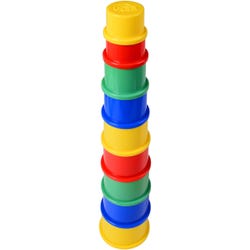 This simple stackable design provides hours of entertainment. Designed for early learners developing fine motor skills, these cups are made to easily stack and nest. Made with bright primary colors for sorting fun and early color identification, young ones will have fun sorting by color, by size, or whatever criteria they decide in the moment. The perfect creative play experience! Designed unbreakable to meet the needs of the most dynamic playrooms, childcare centers, recreational spaces, or anywhere children explore through active play. Full stack is 14 H inches.Features
