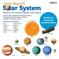 Learning Resources Magnetic Solar System provides full-color, realistically detailed magnets that capture students' attention as you model space science concepts on your whiteboard. Largest magnet (the Sun) has a 10 inch diameter. Widest magnet (Saturn) measures 13-1/2 inches from edges of the ring. Ages 5 (Grades K) and up.Features