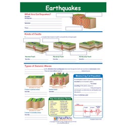 Complete, easy-to-use and engaging, the Earthquakes Learning Center is ideal for the instruction and review of this key, standards-based concept. Designed for either teacher-directed instruction or independent use by groups of 2 to 4 students, the Learning Center provides complete, leveled coverage of this curriculum-aligned topic, making it perfect for differentiated instruction. To use, the students first work individually or in pairs using the 4 laminated Visual Learning Guides provided on the topic. The guide provides a graphic, easy-to-follow overview of the concept; “Write-On/Wipe-Off” activities and graphic organizers; and a set of guiding, assessment review questions. They then form in a group to play the Curriculum Mastery Game included for cooperative or competitive review and reinforcement of the concepts. Packaged in a durable pouch, the Learning Center is a ready-to-use resource for the classroom, after school and summer school programs or at home for test preparation, practice and review! Grades 6 to 10.Features