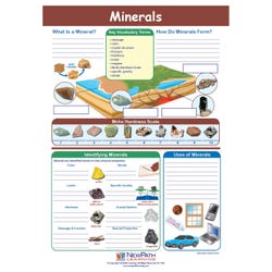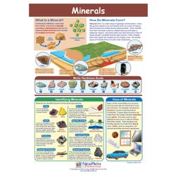 Complete, easy-to-use and engaging, the Minerals Learning Center is ideal for the instruction and review of this key, standards-based concept. Designed for either teacher-directed instruction or independent use by groups of 2 to 4 students, the Learning Center provides complete, leveled coverage of this curriculum-aligned topic, making it perfect for differentiated instruction. To use, the students first work individually or in pairs using the 4 laminated Visual Learning Guides provided on the topic. The guide provides a graphic, easy-to-follow overview of the concept; “Write-On/Wipe-Off” activities and graphic organizers; and a set of guiding, assessment review questions. They then form in a group to play the Curriculum Mastery Game included for cooperative or competitive review and reinforcement of the concepts. Packaged in a durable pouch, the Learning Center is a ready-to-use resource for the classroom, after school and summer school programs or at home for test preparation, practice and review! Grades 6 to 10.Features